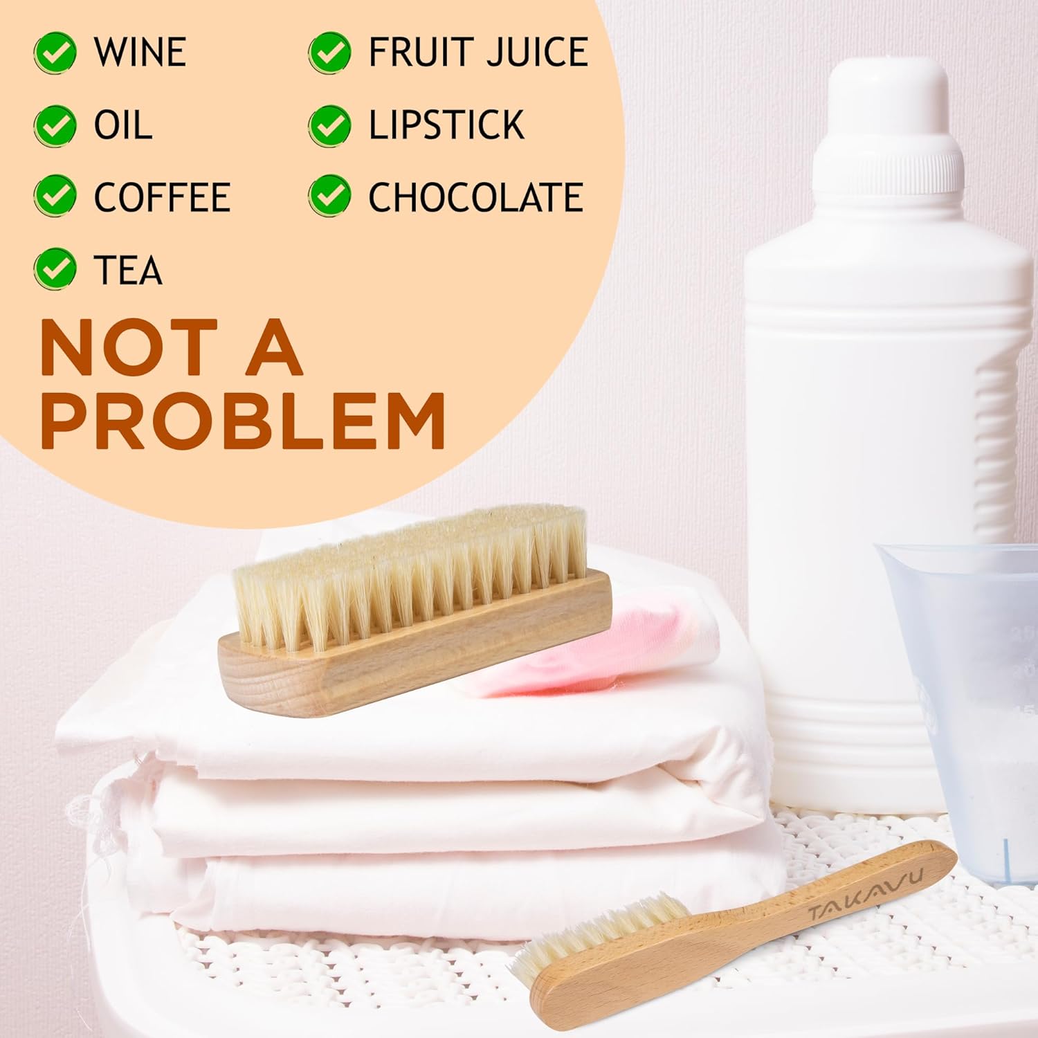 Boar Bristle Laundry Stain Brush Set by TAKAVU, Stiff Pure Boar Bristle for Scrubbing Out Tough Stains on Delicate Fabrics Knits Cotton Leather Washable Fabrics