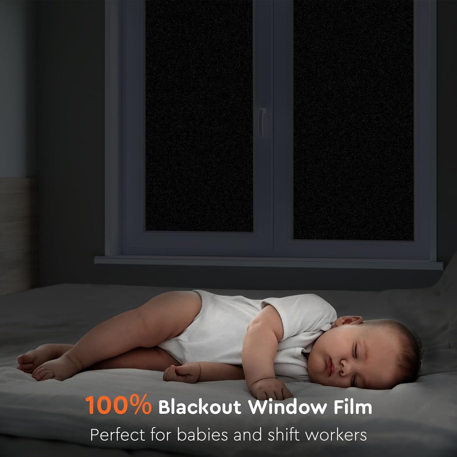 - TOTAL BLACKOUT WINDOW FILM: This window film effectively blocks out 100% UV rays and sun light, protects your skin from sun exposure, prevents your furniture from fading, and keep a comfortable home environment. Black window film offers a high level of privacy and provide double-sided privacy protection at all day, makes your room in completely dark as night, perfect for those who need daytime sleep and complete privacy