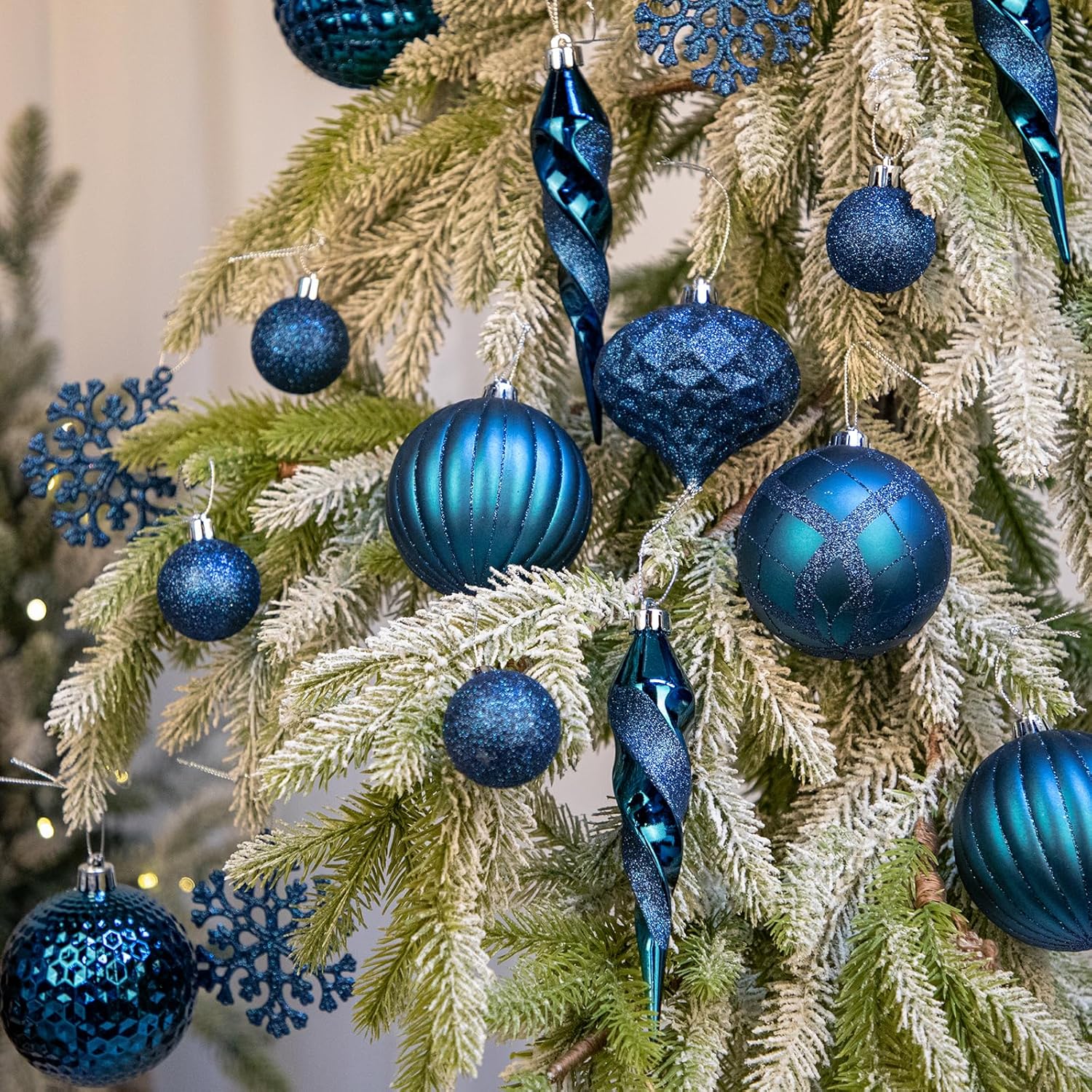 50PCS Christmas Tree Ornaments Set with Shatterproof Balls Icicle Snowflake Hanging Ornaments for Home Office Farmhouse Christmas Decorations, Dark Blue