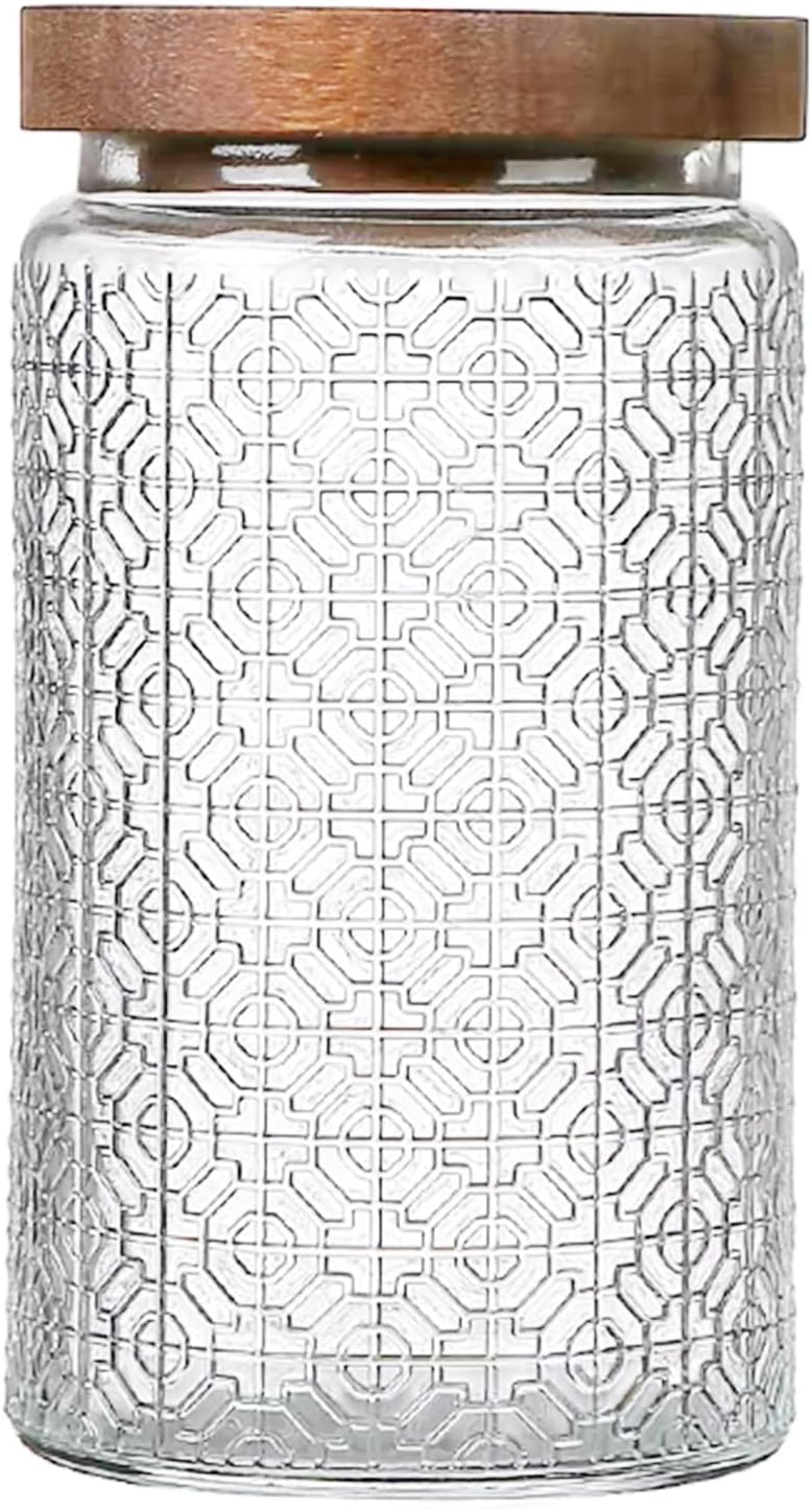 - Food-Grade Glass: The glass storage containers with lids, made with food grade glass, does not contain Bisphenol A , lead and non-toxic. The matching acacia wood lid is not only natural, but also full of vintage design, making your kitchen more elegant