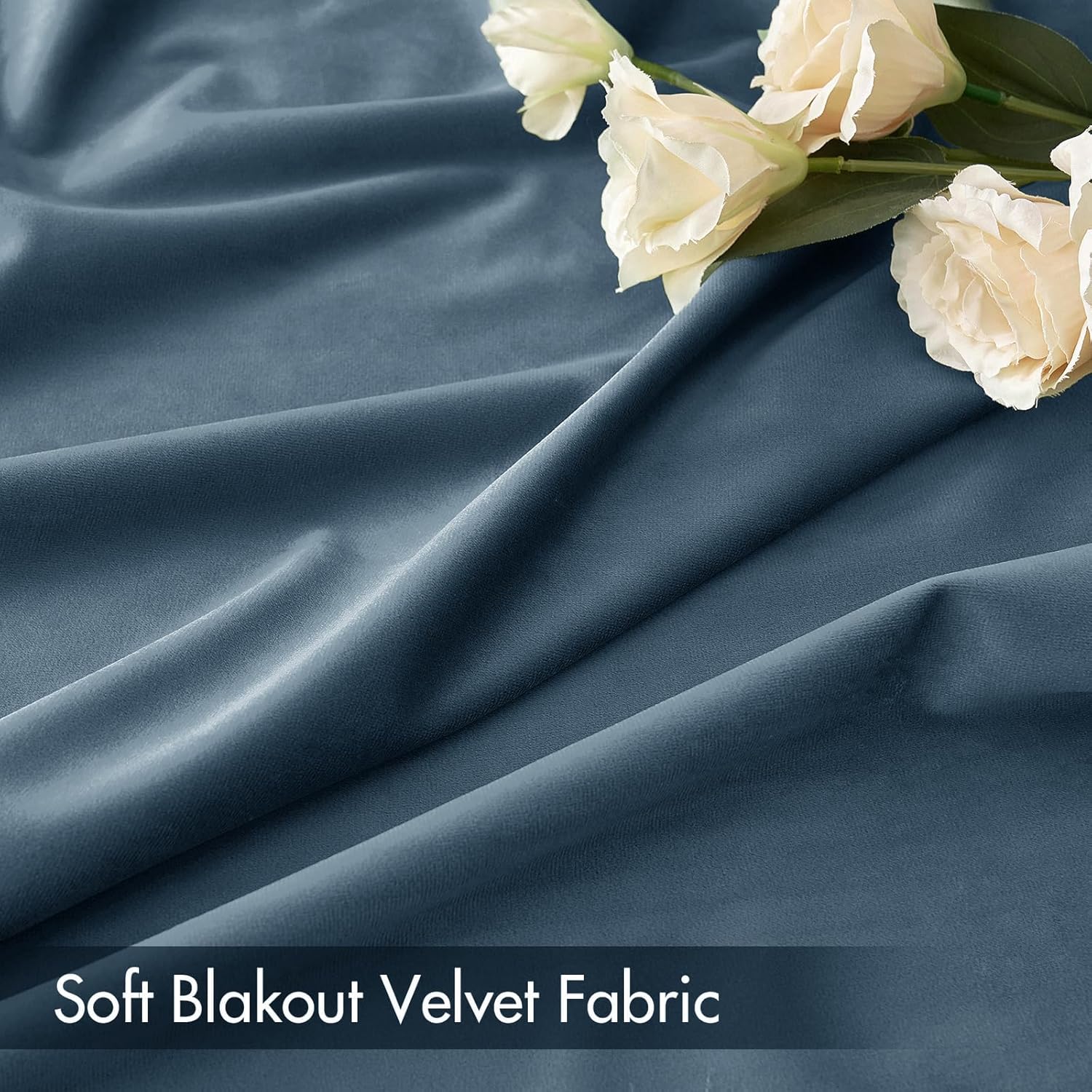 MIULEE Dark Slate Velvet Curtains Thermal Insulated Blackout Curtain Drapes for Bedroom Living Room Darkening 96 Inches Long Curtains Panels Rod Pocket Set of 2