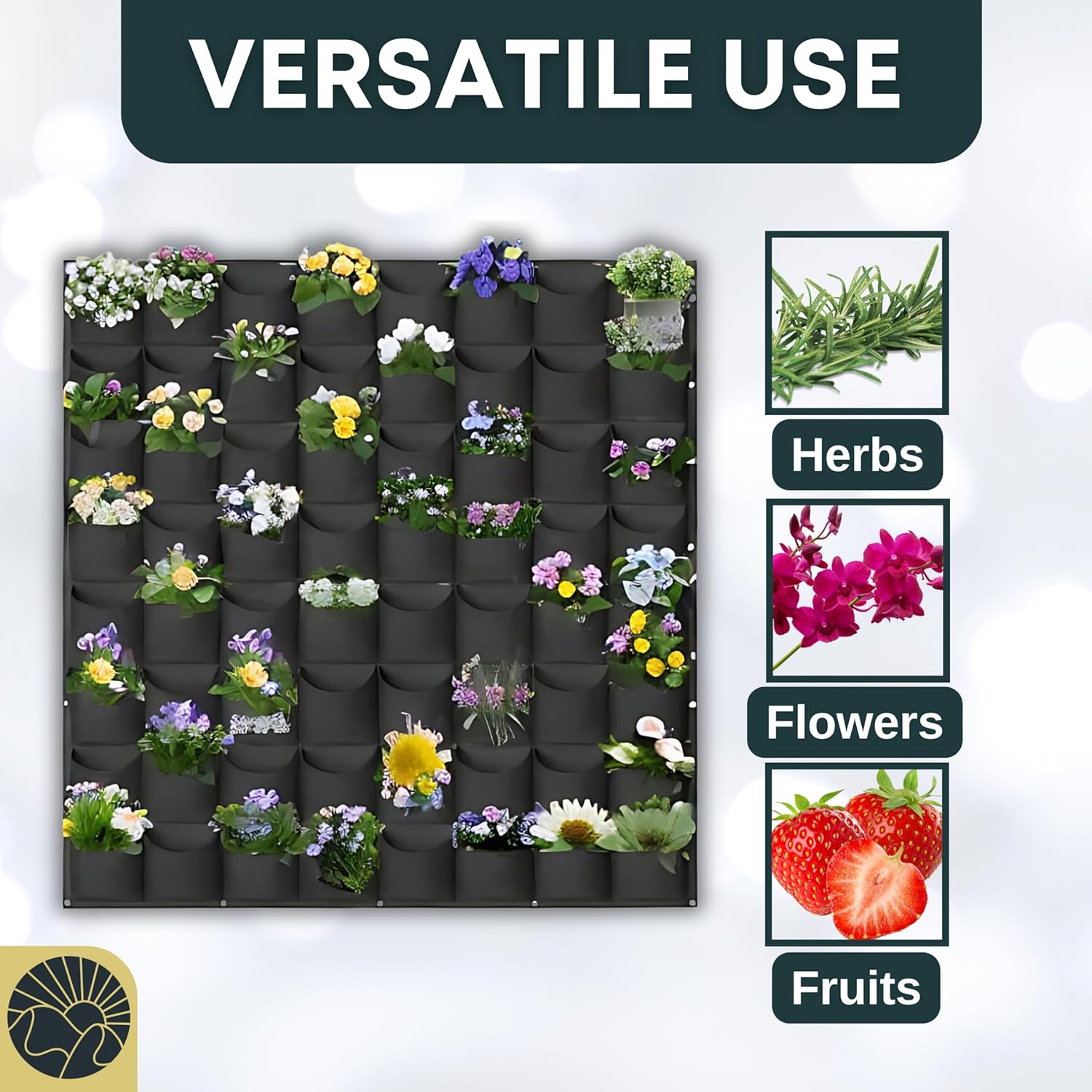 - Space-Saving Solution: Maximize your outdoor space with our sunvara 64 Pocket succulent wall planters, planter wall, vertical farm. Transform any bare wall into a lush vertical garden, ideal for small balconies, patios, or urban gardens.
