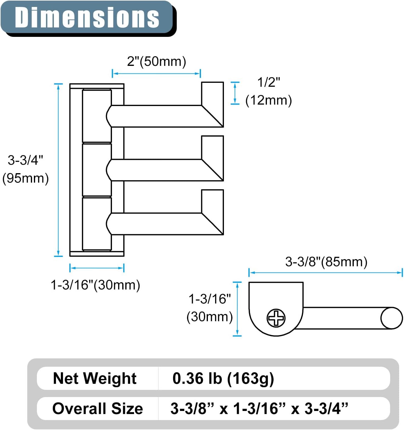 - FUNCTIONAL ASSISTANT: using length of the horizontal holding portion is 2 3/8"(60mm) for wider objects, simple curves outline modern cylindrical structure to complement different home styles