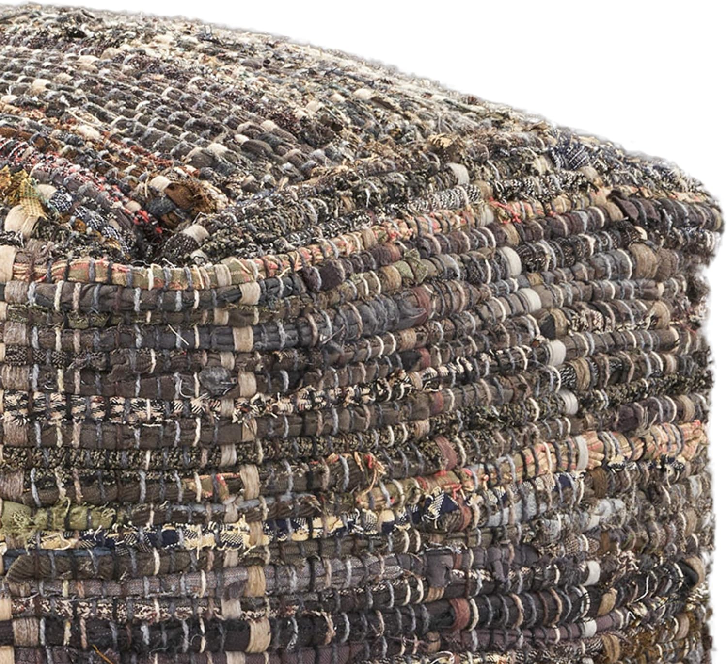 - DENIM AND CHINDI: Perfectly intertwining denim and chindi, our pouf provides a unique design that offers an elaborate weave of braided ropes. This mix of material provides a stunning texture, adding to its beauty and authenticity.