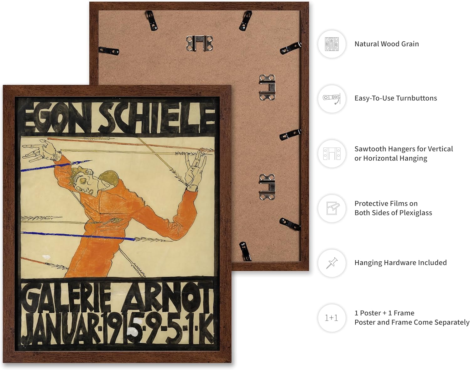 Poster Master Vintage Painting Poster - Retro Expressionism Print - Self Portrait as the Martyred St Sebastian - Gift for Artist, Friend - Wall Decor for Home, Office, 16x20 Brown Framed