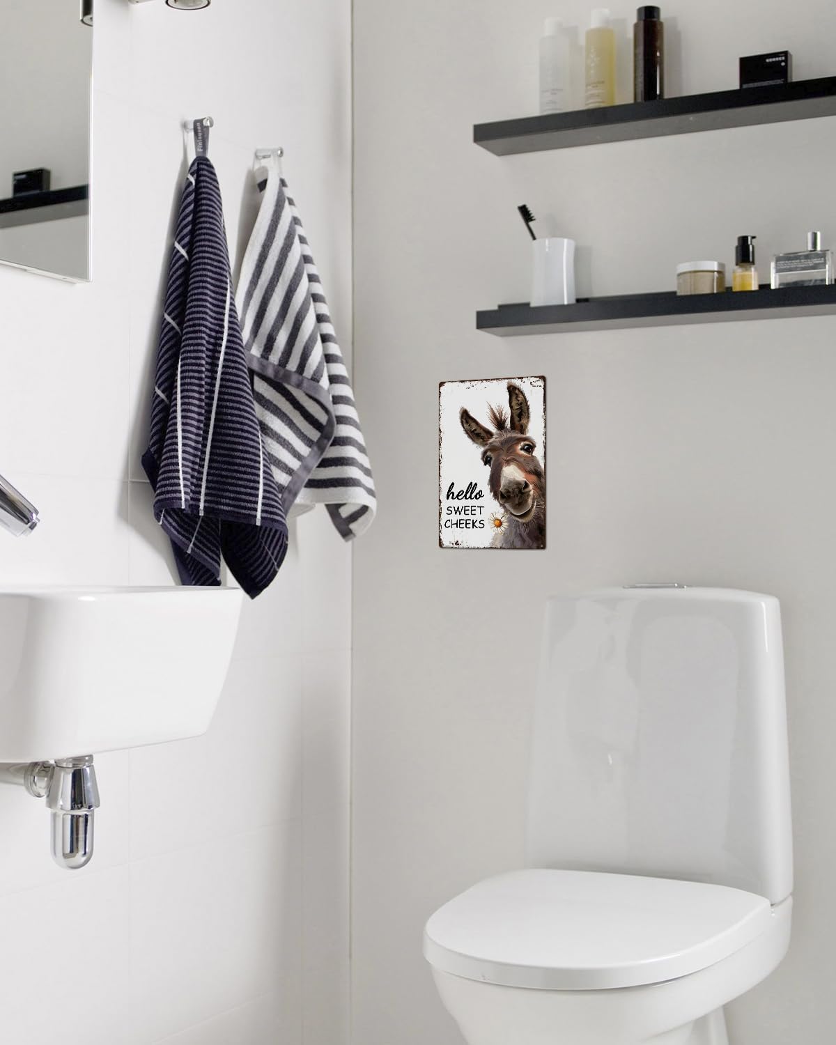 ALKB Western Bathroom Decor Vintage Donkey Gift - Funny Bathroom Restroom Toilet Decoration - Hello Sweet Cheeks Metal Sign 8x12 Inch
