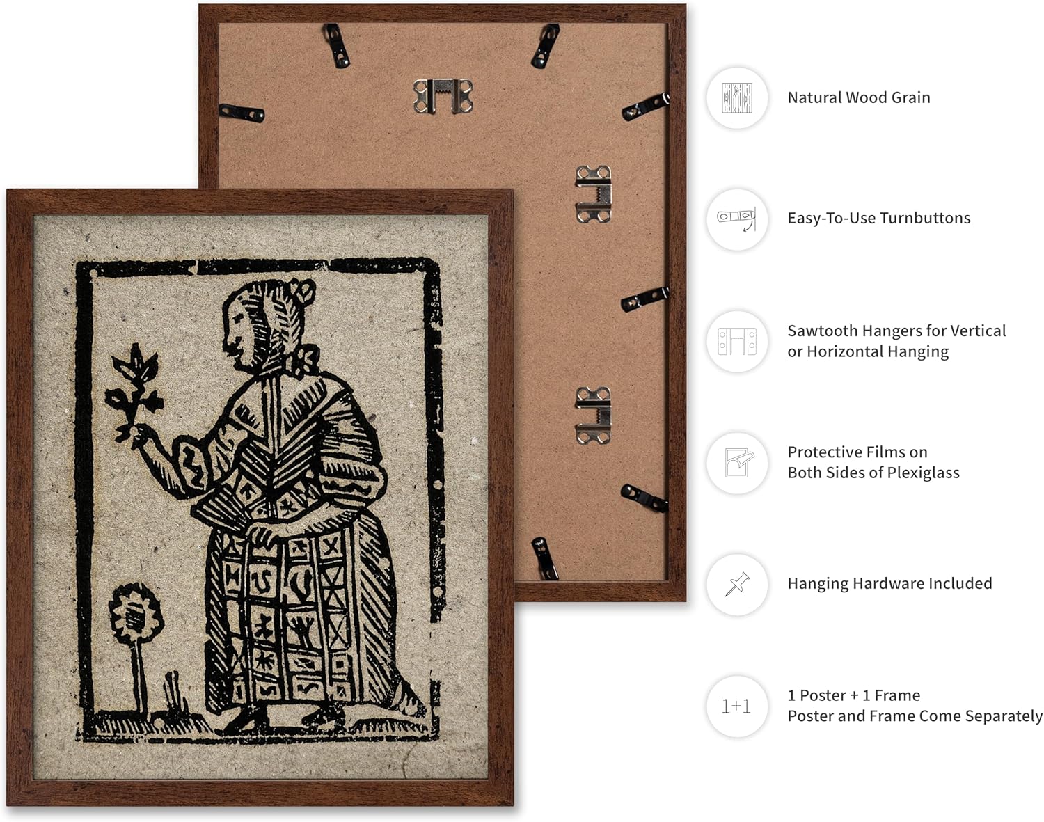 Poster Master Vintage Woodcut Poster - Retro Medieval Print - Gift for Gothic, Horror Fan - Witch Holding a Plant, Magic, Spell, Herbalist - Wall Decor for Bedroom, Dorm, 11x14 Brown Framed