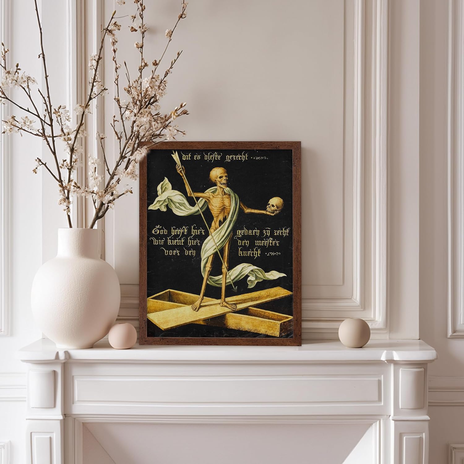 Poster Master Vintage Medieval Poster - Retro Gothic Print - Gift for Artist, Friend - Allegory of Life and Death, Skeleton, Dark, Skull - Wall Decor for Home, Living Room, 8x10 Brown Framed