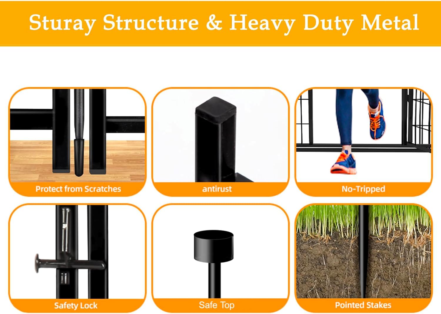 - Easy to Install: This Metal Fence is Much More Practical, Stronger, and Simpler to Install Than Those Small Fences in The Past. You Won't Spend More Than 10 Minutes Assembling Them. The Panels Can be Added or Removed Freely. This Gives You A Totally Flexible Area and You Can Arrange Them In Any Shape You Want