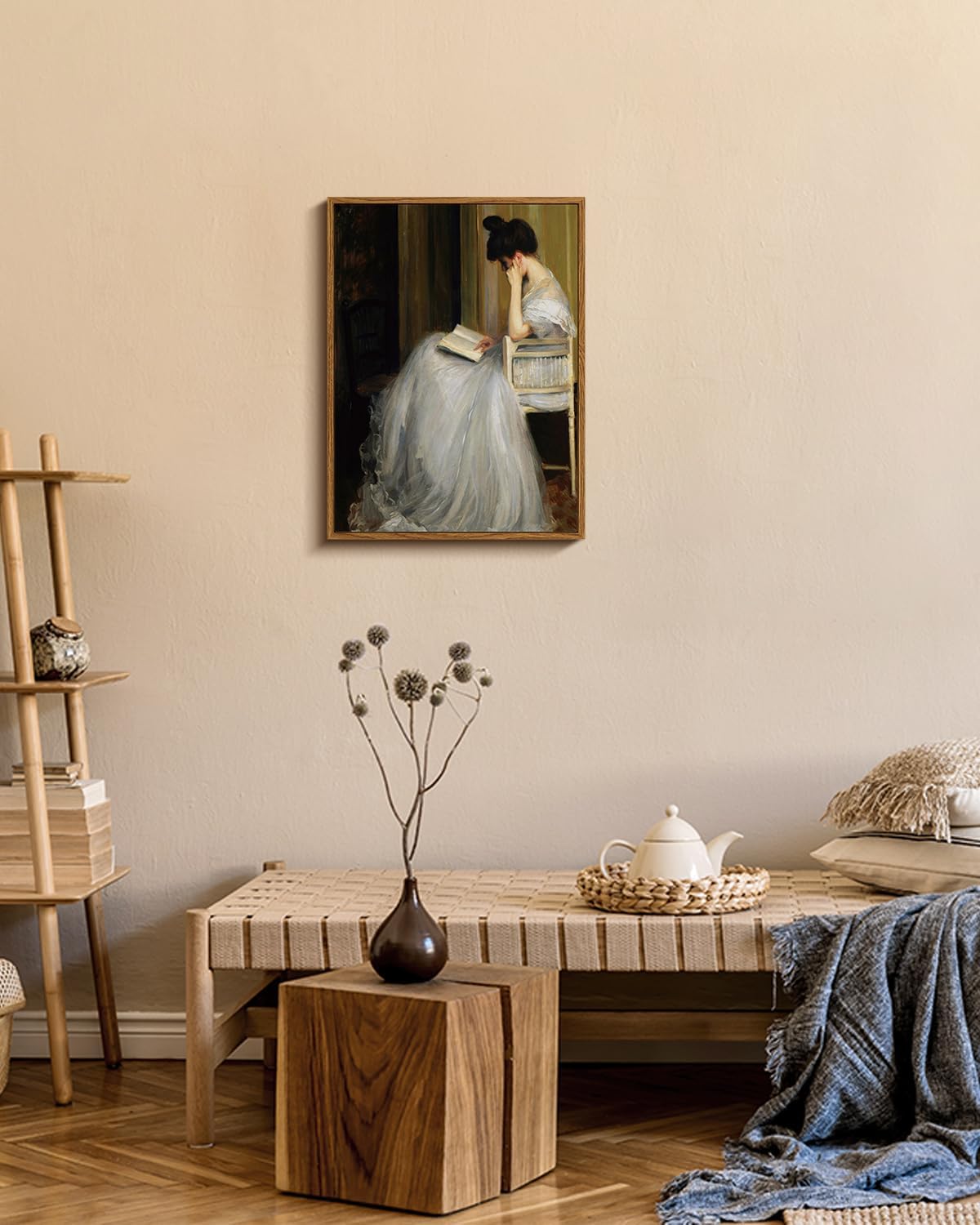 VIYYIEA Framed Canvas Wall Art Home Decor Portrait Art for Living Room Women Reading Pictures Bedroom Bathroom Wall Decor Mid Century Lady Oil Painting Room Decor Vintage Prints Aesthetic 12x16in