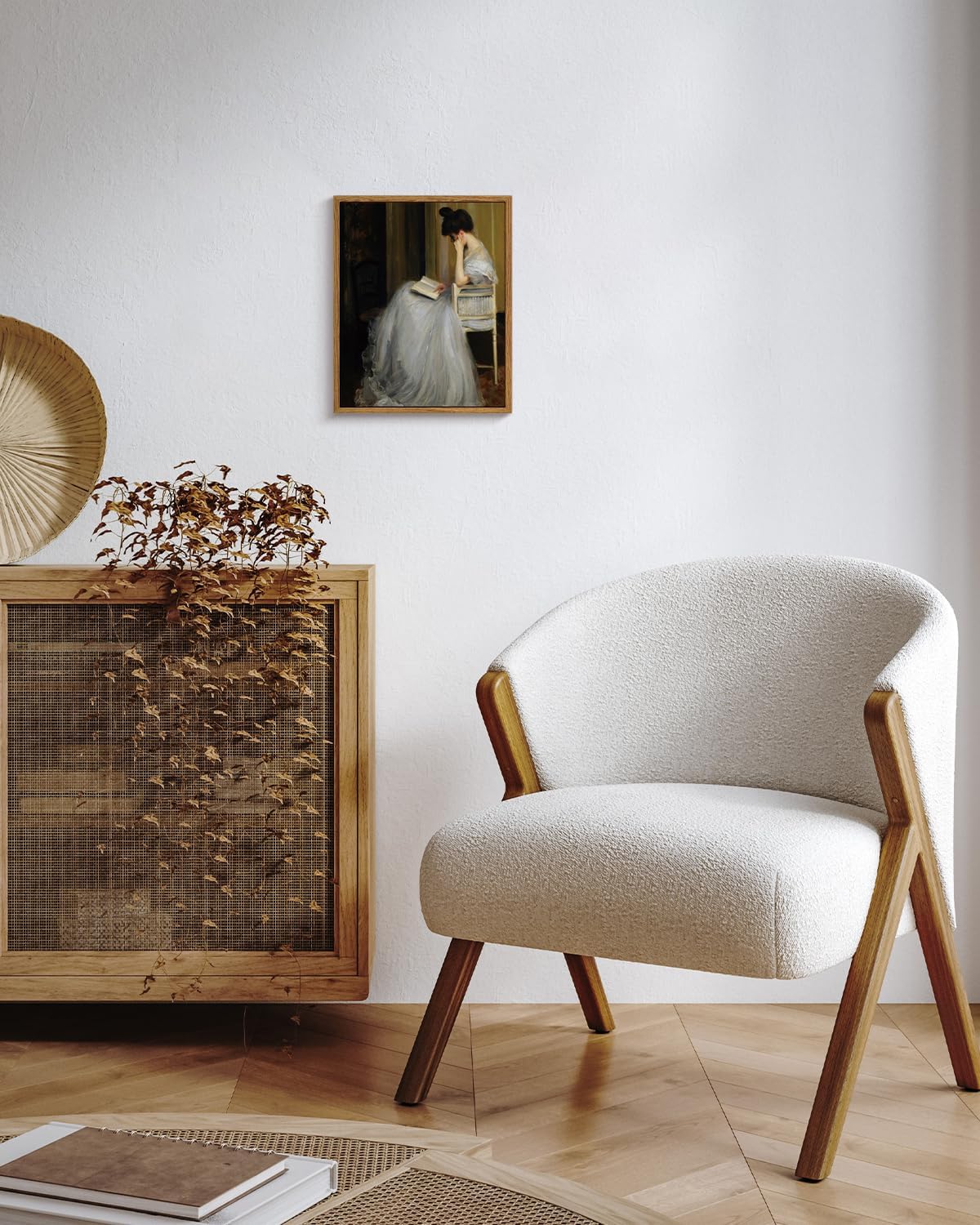 VIYYIEA Framed Canvas Wall Art Home Decor Portrait Art for Living Room Women Reading Pictures Bedroom Bathroom Wall Decor Mid Century Lady Oil Painting Room Decor Vintage Prints Aesthetic 9x11in