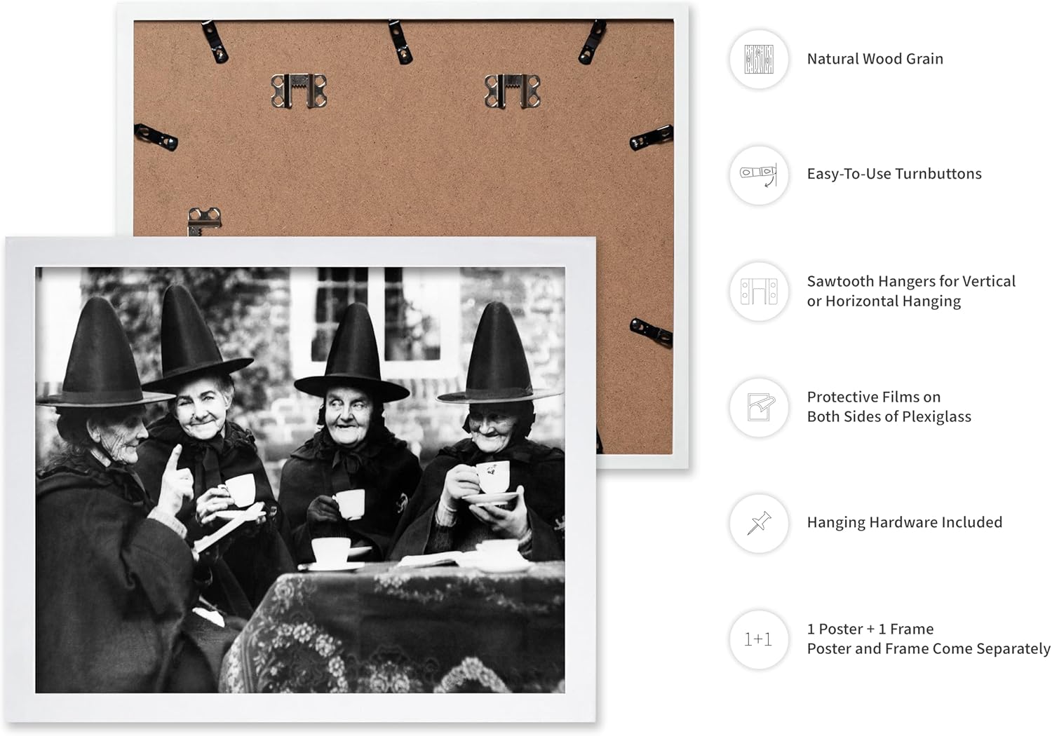 Poster Master Classic Photograph Poster - Vintage Halloween Print - Gift for Artist, Friend - Witches Tea Party, Old Women Smiling, Wearing Robes - Wall Decor for Living Room, 16x20 White Framed