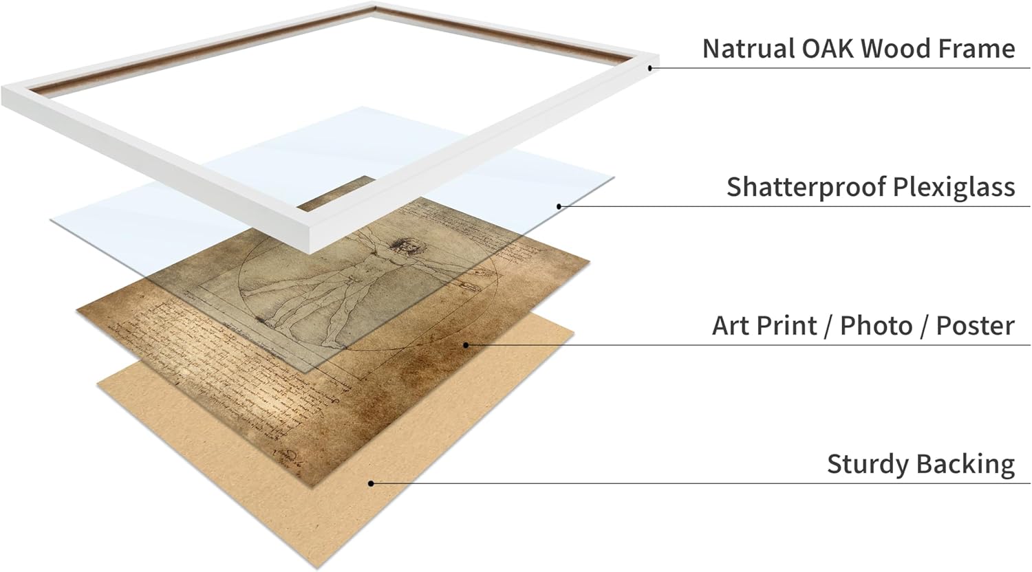 Poster Master Classic Leonardo Da Vinci Poster - Vintage Renaissance Print - Gift for Artist, Friend - Vitruvian Man, Proportion, Symmetry, Human Body - Wall Decor for Office, 8x10 White Framed