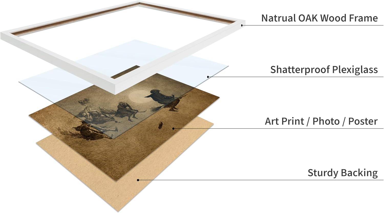 Poster Master Vintage William Holbrook Beard Poster - Retro Occult Print - Gift for Gothic, Horror Fan - The Witches Ride, Pagan, Goth, Magic - Wall Decor for Bedroom, Dorm, 8x10 White Framed