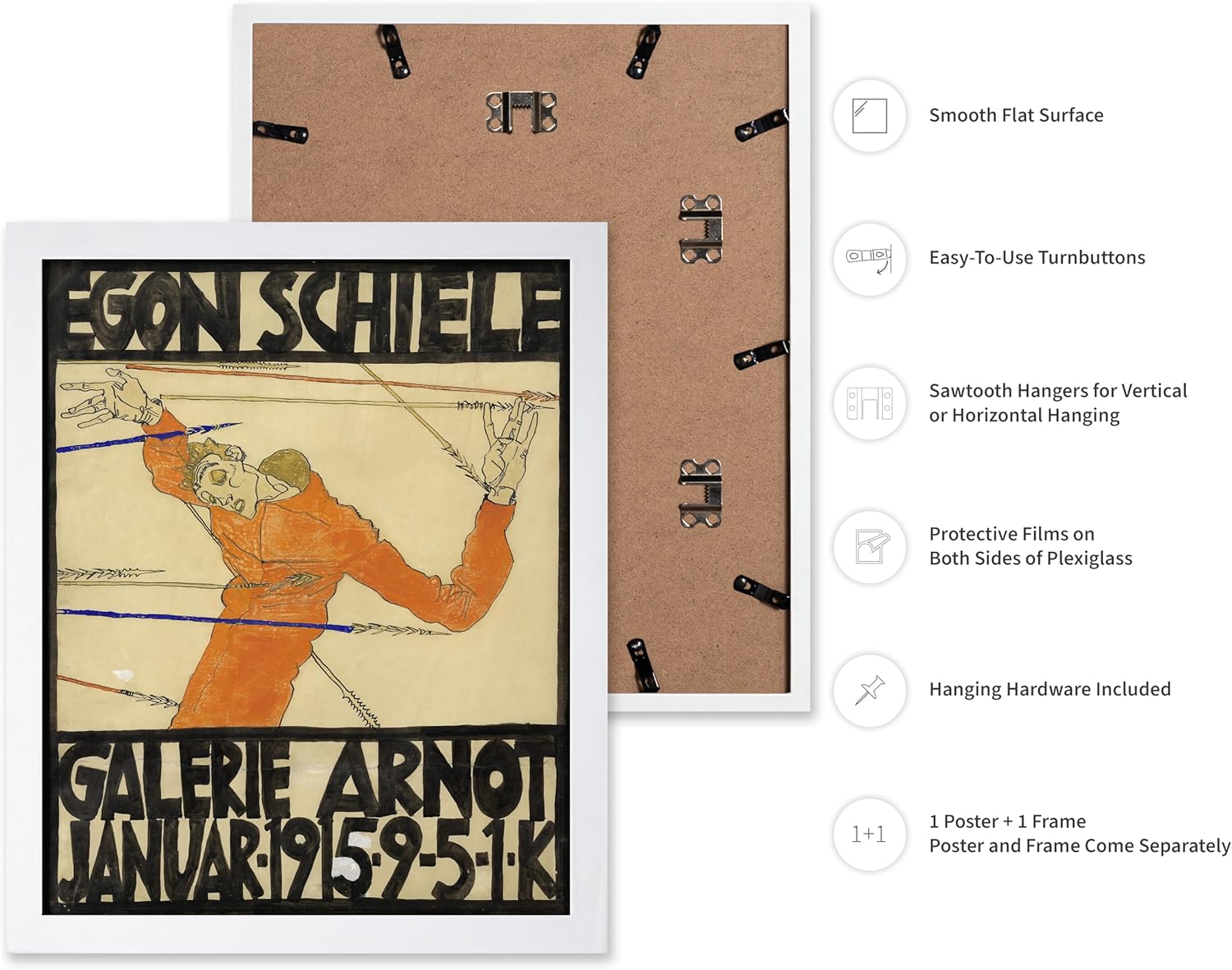 Poster Master Vintage Painting Poster - Retro Expressionism Print - Self Portrait as the Martyred St Sebastian - Gift for Artist, Friend - Wall Decor for Home, Office, 11x14 White Framed