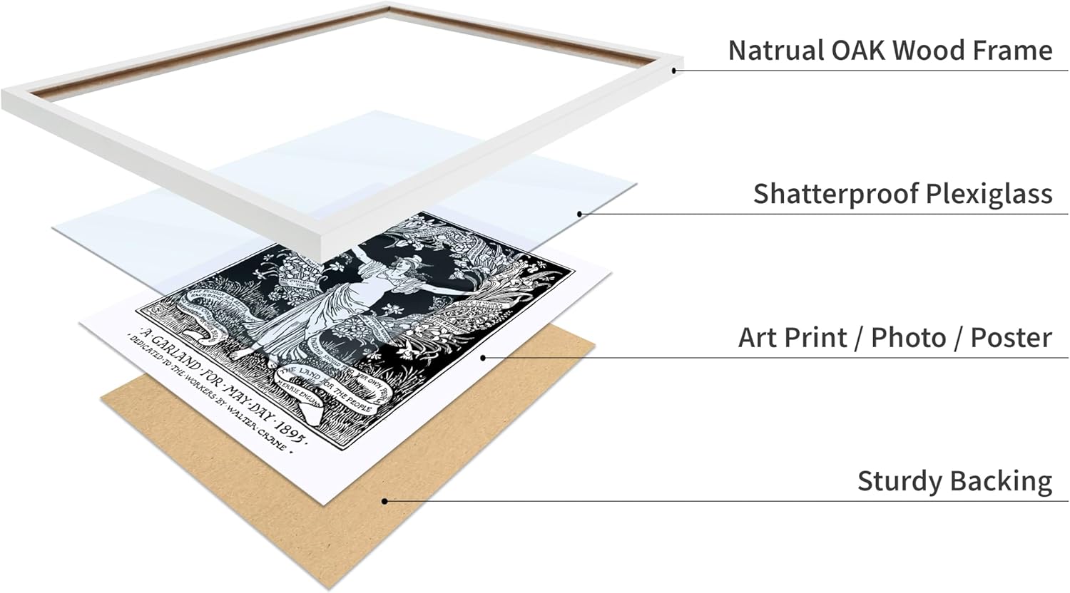 Poster Master Vintage Walter Crane Poster - Retro A Garland for May Day Print - Socialist Art - Gift for Him, Her, Men, Women - Wall Decor for Home, Office, Living Room, 16x20 White Framed
