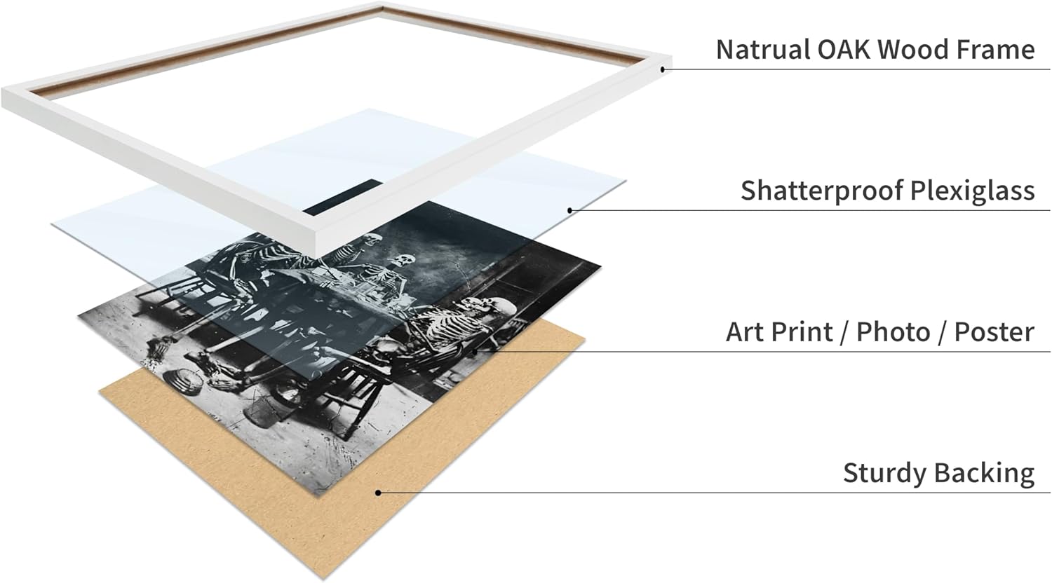 Poster Master Vintage Photograph Poster - Retro Daguerreotype Print - Gift for Artist, Friend - Skeletons Smoking at Table, Dinner Party, Goth - Wall Decor for Home, Dorm, 16x20 White Framed