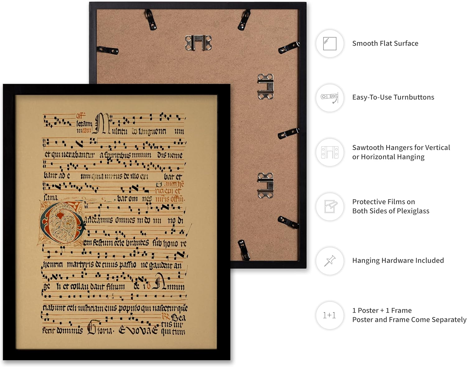 Poster Master Vintage Hymnal Poster - Retro Music Print - Gift for Artist, Friend - Graduale Aboense, Gregorian Chant Manuscript, Score - Wall Decor for Living Room, Bedroom, 8x10 Black Framed