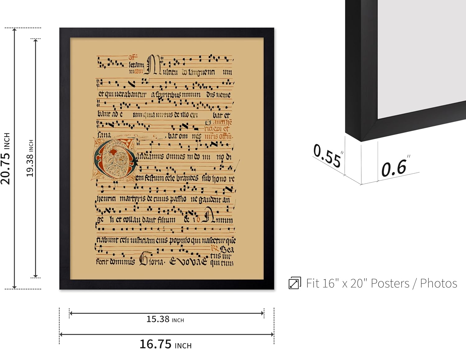 Poster Master Vintage Hymnal Poster - Retro Music Print - Gift for Artist, Friend - Graduale Aboense, Gregorian Chant Manuscript, Score - Wall Decor for Living Room, Bedroom, 16x20 Black Framed