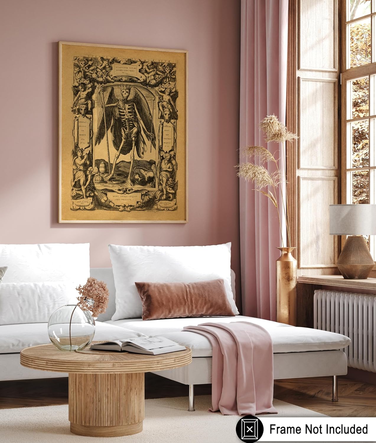 Poster Master Vintage Medieval Poster - Retro Gothic Print - Gift for Artist, Friend - Angel of Death, Memento Mori, Life, Skeleton, Dark - Wall Decor for Home, Living Room, 24x32 Unframed Wall Art