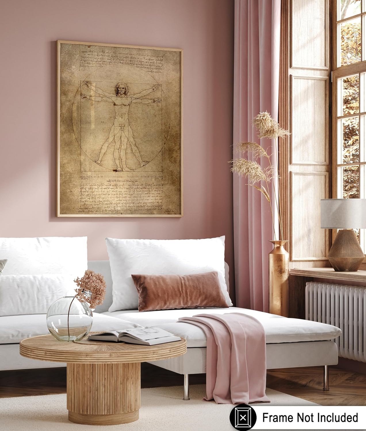 Poster Master Classic Leonardo Da Vinci Poster - Vintage Renaissance Print - Gift for Artist, Friend - Vitruvian Man, Proportion, Symmetry, Human Body - Wall Decor for Office, 18x24 Unframed Wall Art