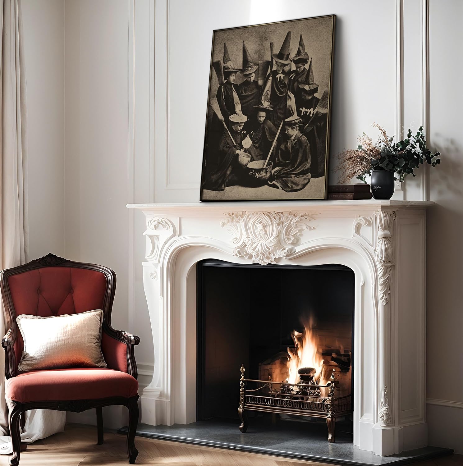 Poster Master Vintage Photograph Poster - Retro Halloween Print - Gift for Artist, Friend - Witches Cooking, Pointy Hats, Broomsticks, Black Magic - Wall Decor for Bedroom, 24x32 Unframed Wall Art