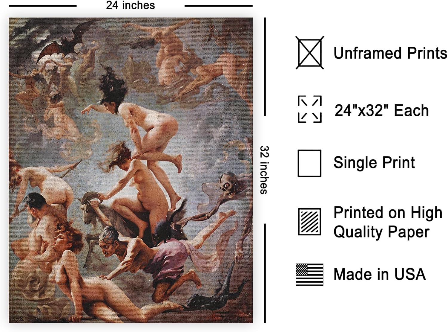 Poster Master Vintage Luis Ricardo Falero Poster - Retro Occult Print - Gift for Gothic, Horror Fan - Witches Going to their Sabbath, Pagan - Wall Decor for Bedroom, Dorm, 24x32 Unframed Wall Art