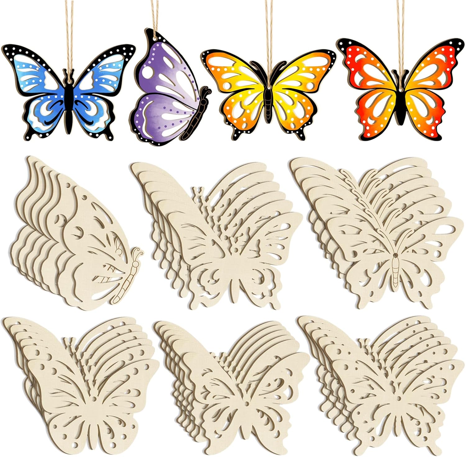 36PCS Wooden Hollow Butterfly Ornaments to Paint, 6 Styles DIY Blank Unfinished Wood Cutouts Ornament for Crafts Hanging Decorations Summer