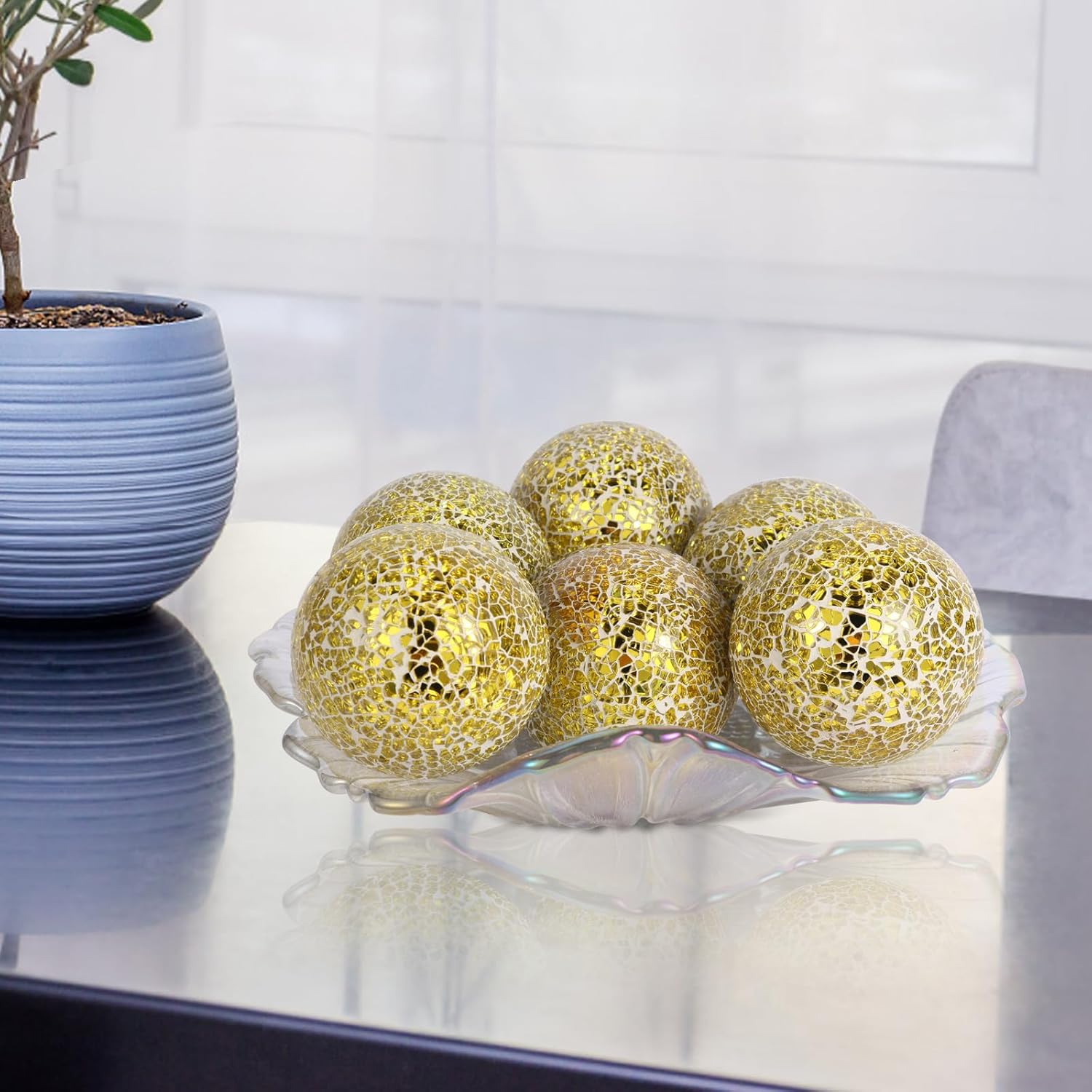 6Pcs Decorative Ball Set, 6cm/2.4inch Mosaic Glass Orbs Centerpiece Balls for Decorate Tables, Wedding Party (Golden)