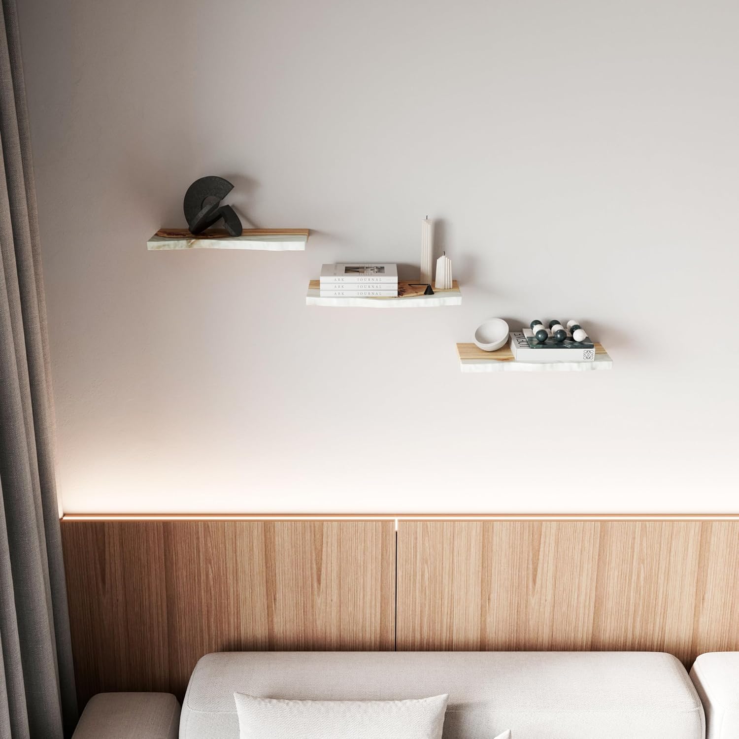 • Floating Design with Hidden Wall Mount: The innovative floating shelf design maximizes storage space while maintaining a clean, minimalist look. The hidden wall mount system ensures an easy and secure installation, allowing the shelves to appear as if they're floating.
