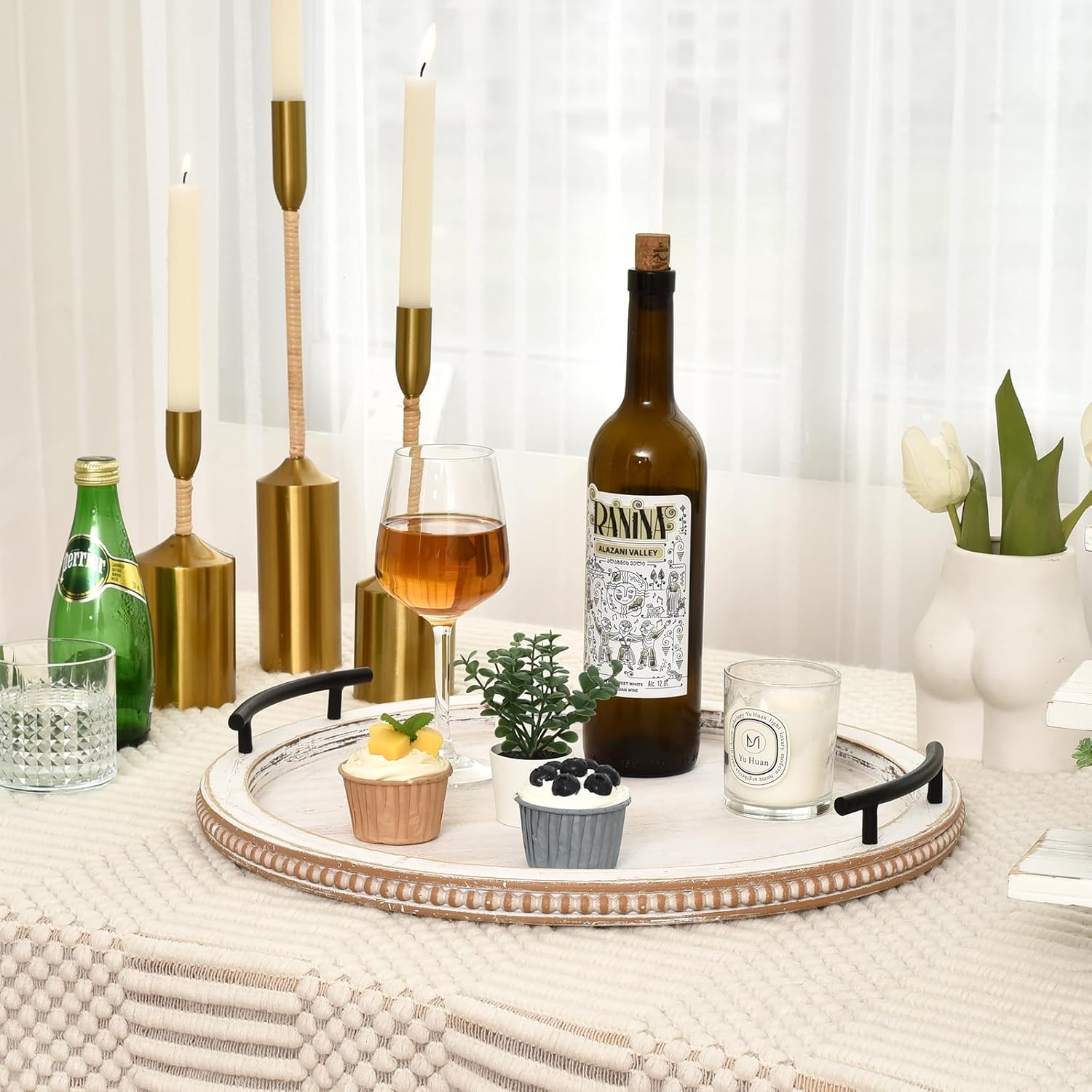 - VERSATILE SHABBY CHIC ROUND TRAY: Our tray accentuates a classic vintage aura, perfect for blending with all decor themes. This versatile item is perfect for coffee tables, shelving, and kitchen countertops.