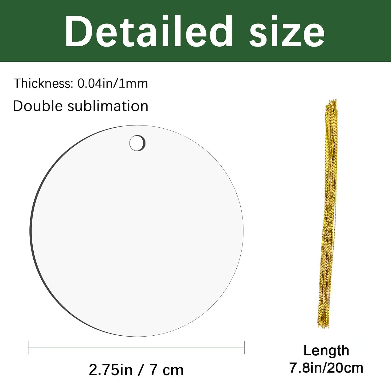 - 【 Package Contents 】32 pcs Sublimation Ornament blank, Ornament 2.75 inches /7cm in diameter, 0.039 inches /1mm thick, 32 pieces of string