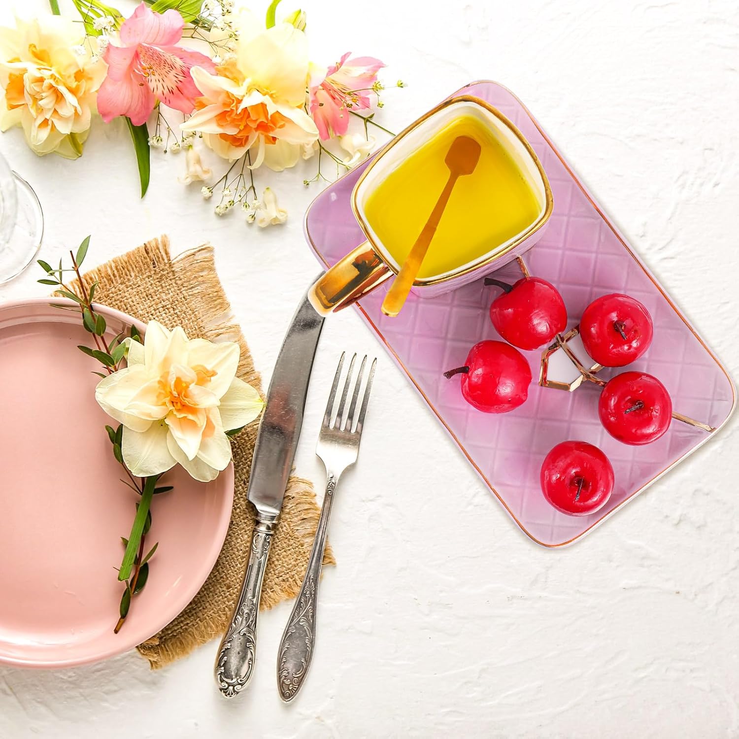 - Attractive and Elegant: the ceramic aesthetic coffee mug with saucer is characterized by handbag shapes and hand painted golden edges, and the color combination of purple and gold makes it more beautiful and graceful, which can bring both decorative and practical functions