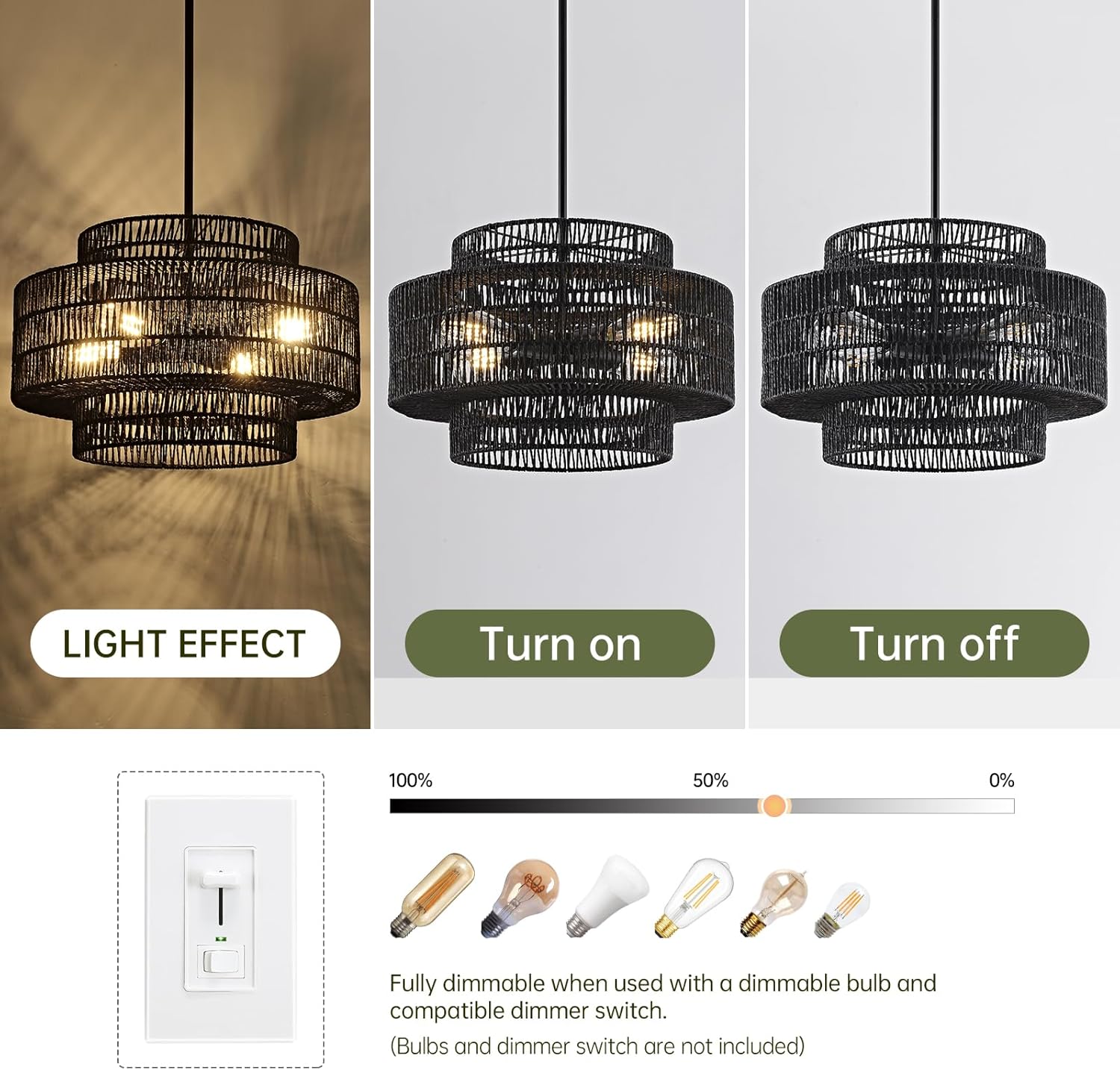 - [VERSATILITY & E26 BULB] Equipped with 4 * E26 socket, our Rattan Chandelier Light Fixture is adaptable to various E26 bulbs including incandescent, vintage filament, halogen and LED bulbs. Additionally, it's dimmable when used with compatible bulbs and switches (not included), making it a versatile choice for any space, such as your farmhouse, kitchen, stairs, hallway, living room, bedroom, loft, nursery, corridor, restaurants, coffee, club and lounges.
