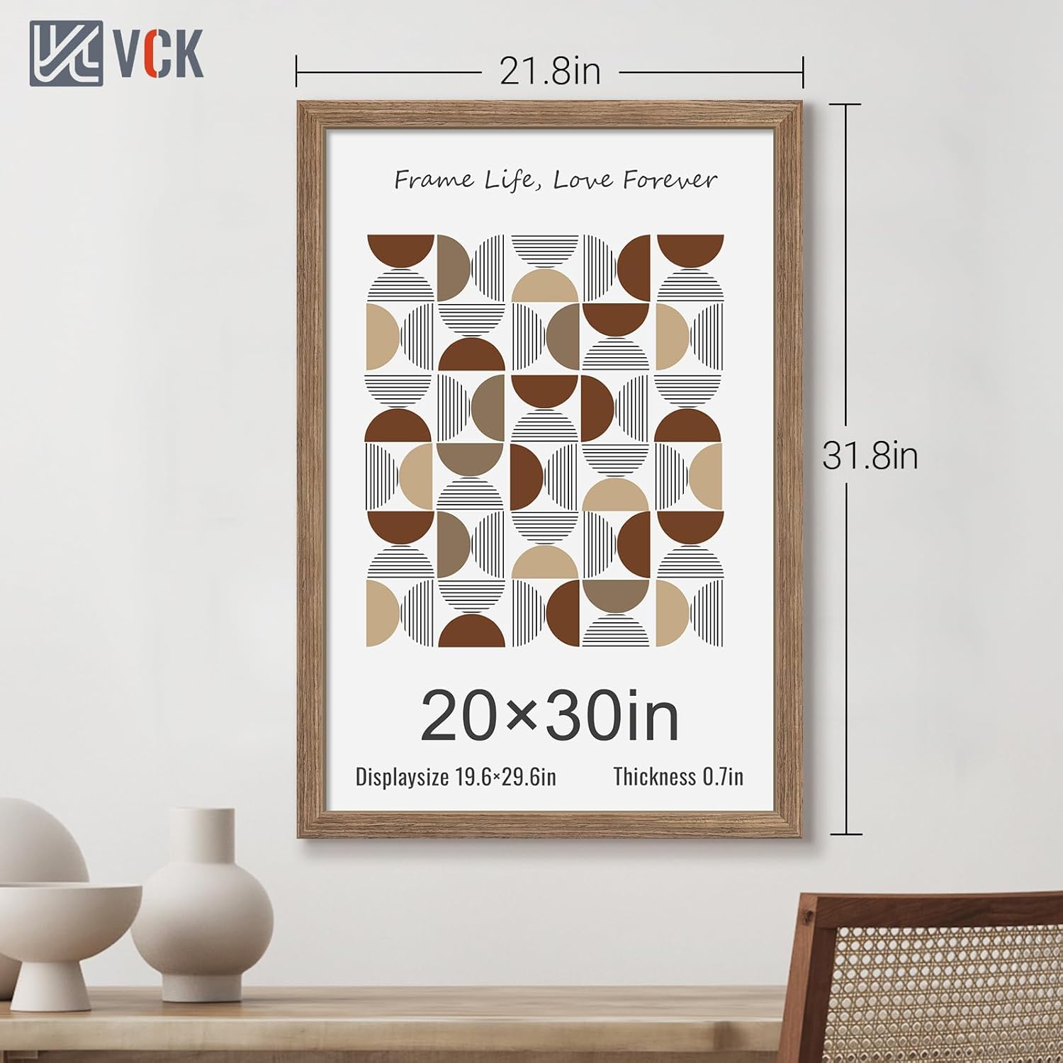 VCK 20x30 Frame 3 Pack - Brown Walnut, Natural Textured Solid Wood Poster Picture Frame, Wall Mounting Hanging