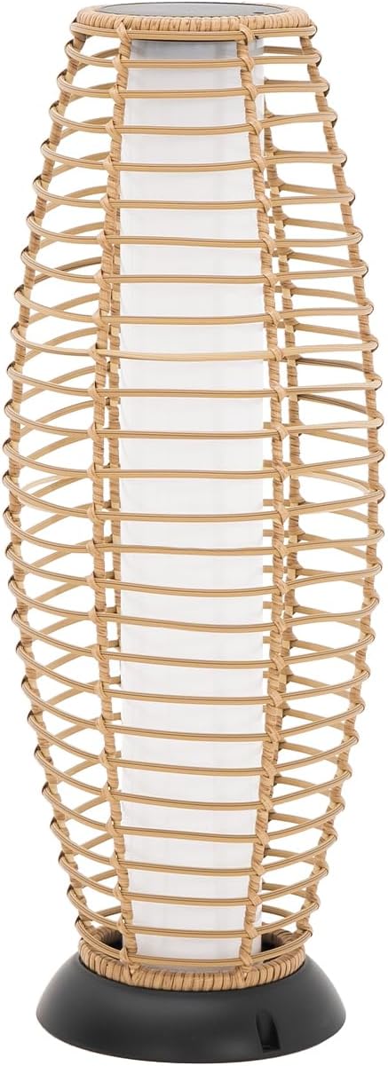 - WICKER FLOOR LAMP: This outdoor solar lamp is made of sturdy steel frame and PE rattan, ensuring its long-term use and stability. The waterproof level of this solar lamp reaches IP44, helping this lamp withstand all weather and offering it strong protection from splashing water in rainy day without any trouble. This oblong lamp provides a uniform and delicate light that protects your eyes and is an ideal floor lamp for night walking. Lamp Dimesion: 11.4"W x 28.3"H.