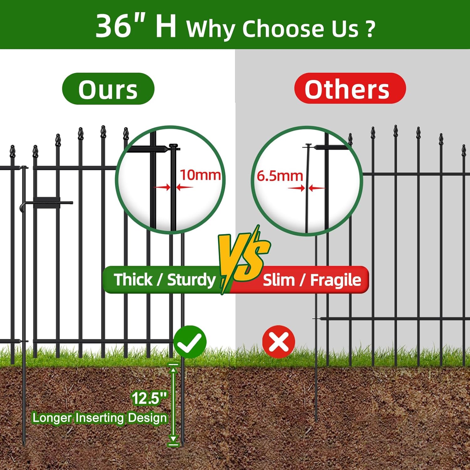 - ATTRACTIVE DESIGN: This 36 inch tall garden fence with black powder coated finish is durable for outdoor using, classically designed Roman Column decoration on arch patterns, which makes garden fencing more attractive.