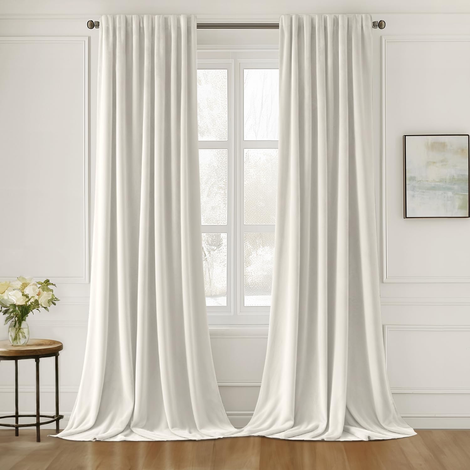 MIULEE Ivory White Velvet Curtains 108 inches Long 2 Panels - Luxury Pinch Pleated Room Darkening Window Drapes for Bedroom Living Room Thermal Insulated Super Soft, Back Tab Rod Pocket Elegant Decor