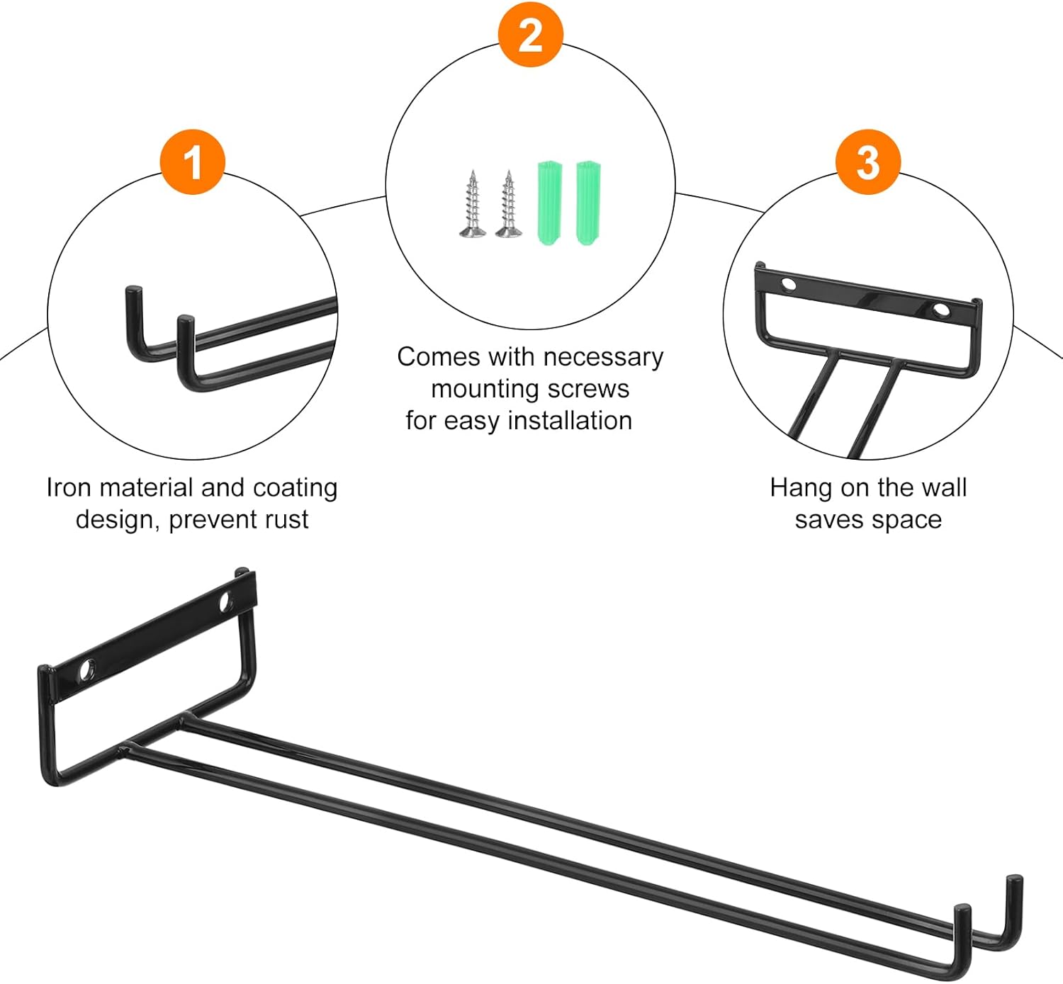 - [Easy to Install] Our wine glass rack comes with the necessary mounting screws for easy installation. You can only need to use a screwdriver to screw the provided screws into the wood of the cabinet. They fit perfectly under cabinets in a few minutes.