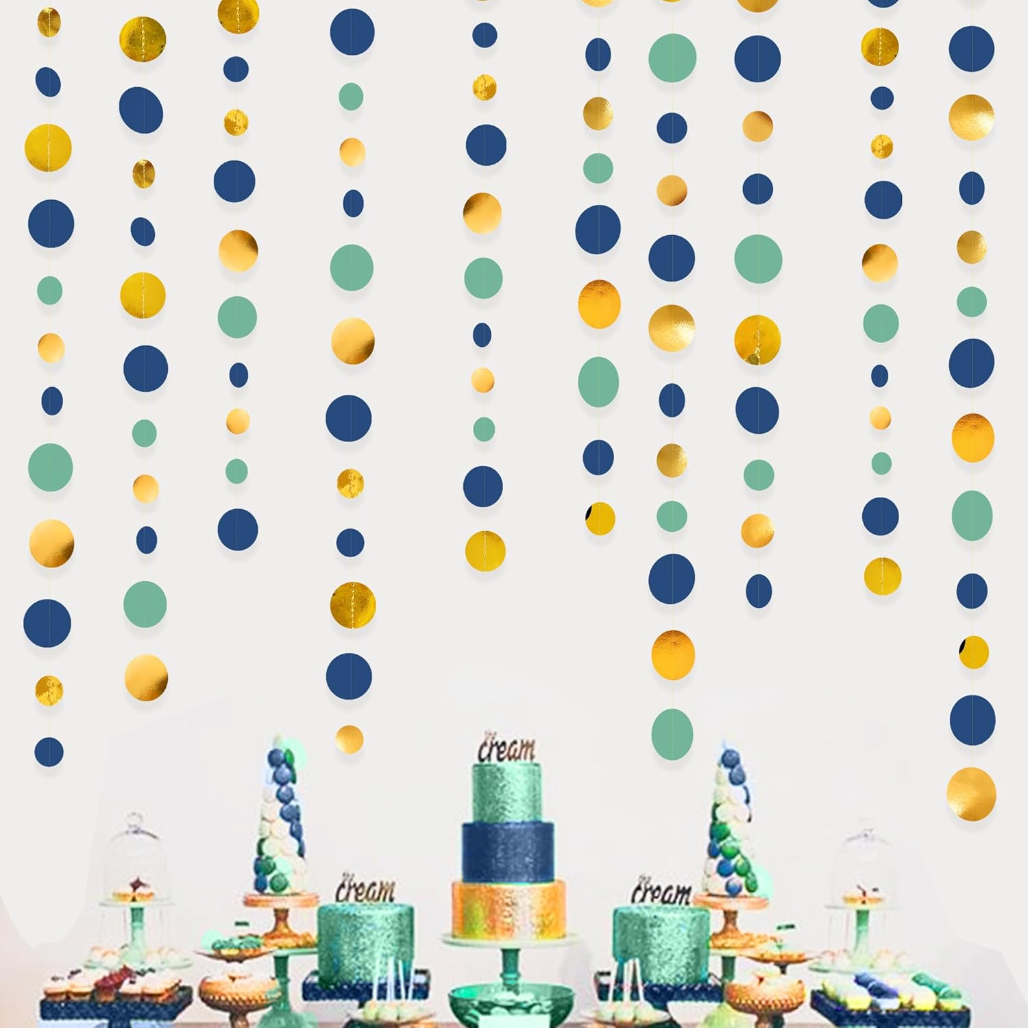 - Package Contains- 4 set of navy gold sage green circle dot party garland banner,each string is 11.5 feet/3.5 meters, Total is 14 meters/46 feet.