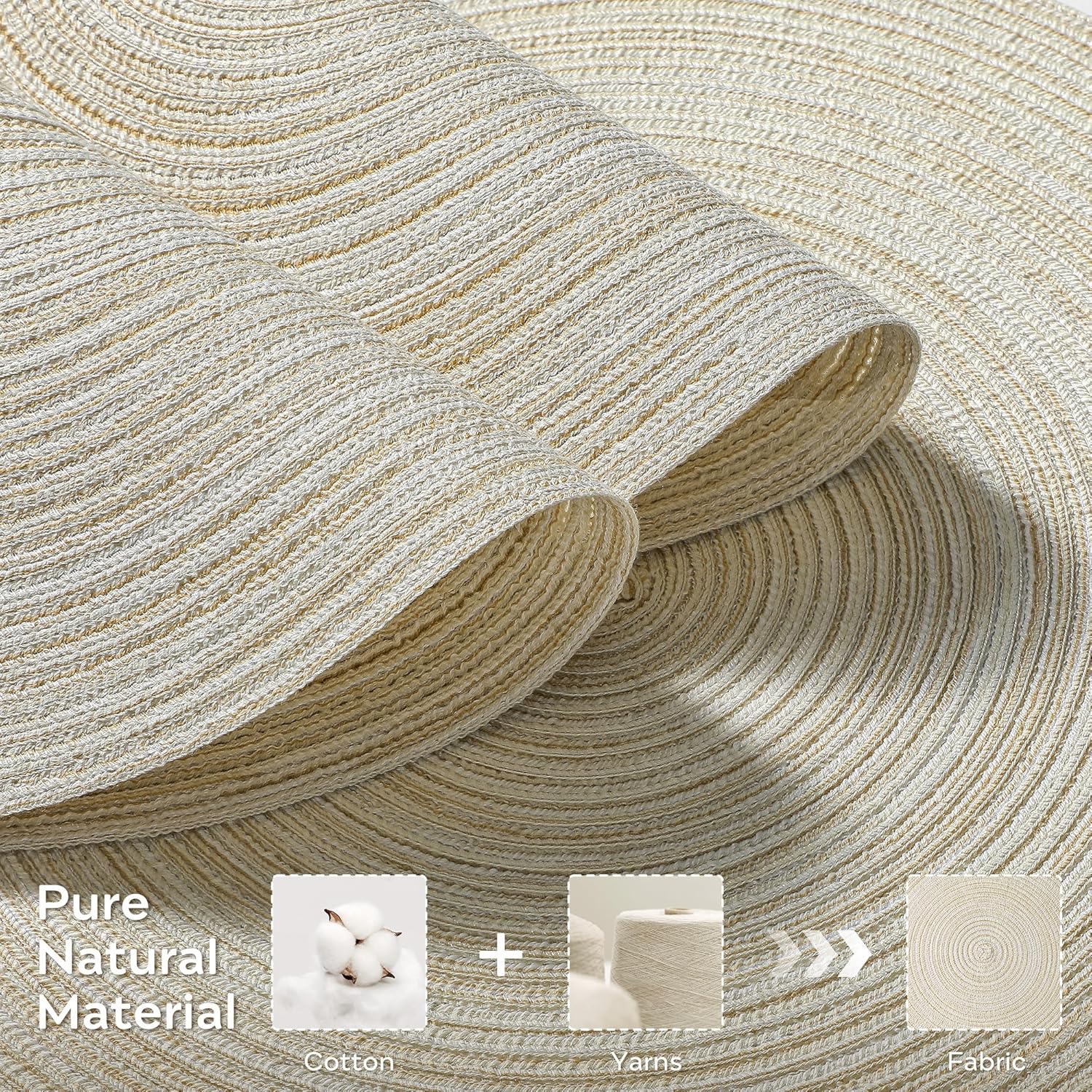 Leetaltree Round Placemats Heat and Slip Resistant Cotton Table Mats, Washable Bohemian Placemats for Dining Tables (White Beige, Set of 4)