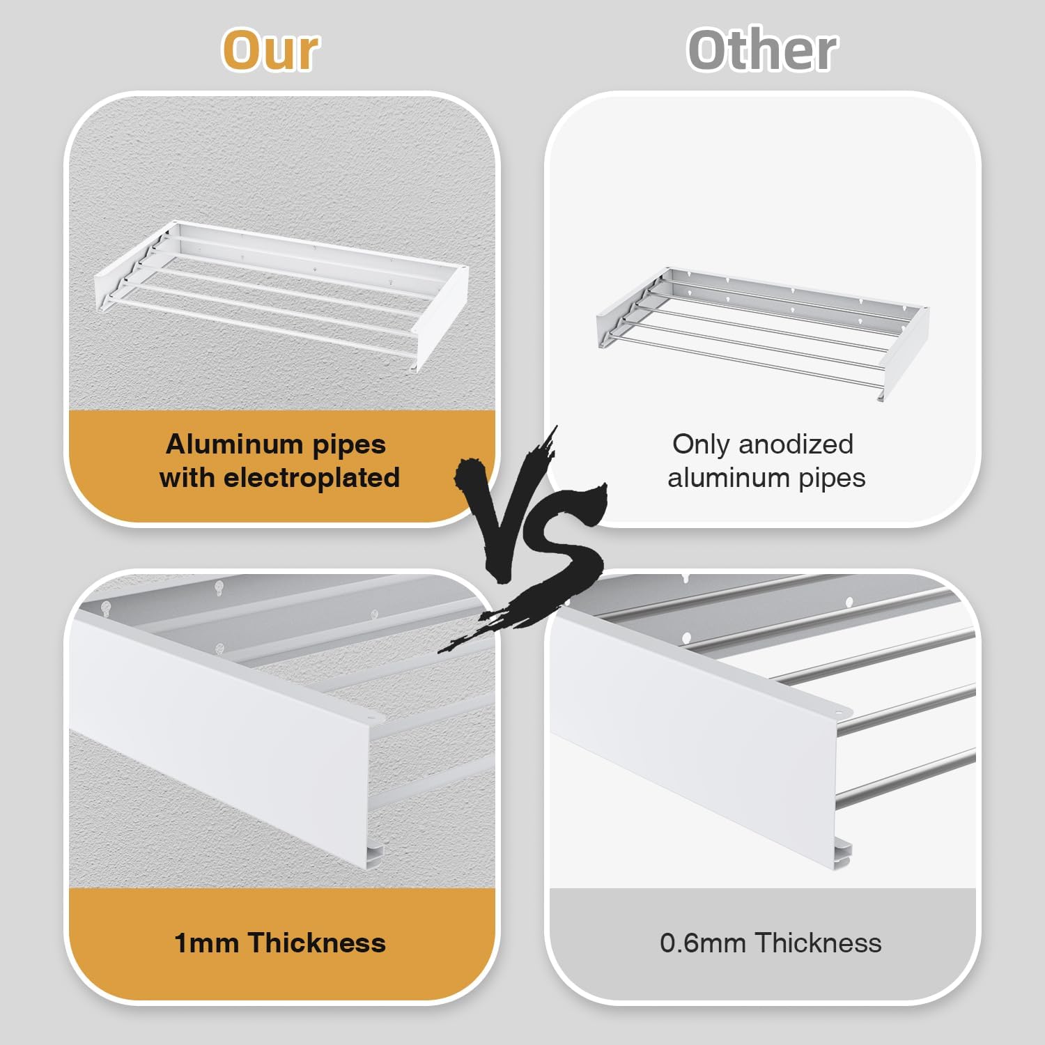 Laundry Drying Rack Collapsible, Wall Mounted Clothes Drying Rack, Space Saving Drying Rack for Laundry, 40" Wide, 16.5 Linear Ft, 5 Aluminum Rods, 60 lb Capacity (White 40")