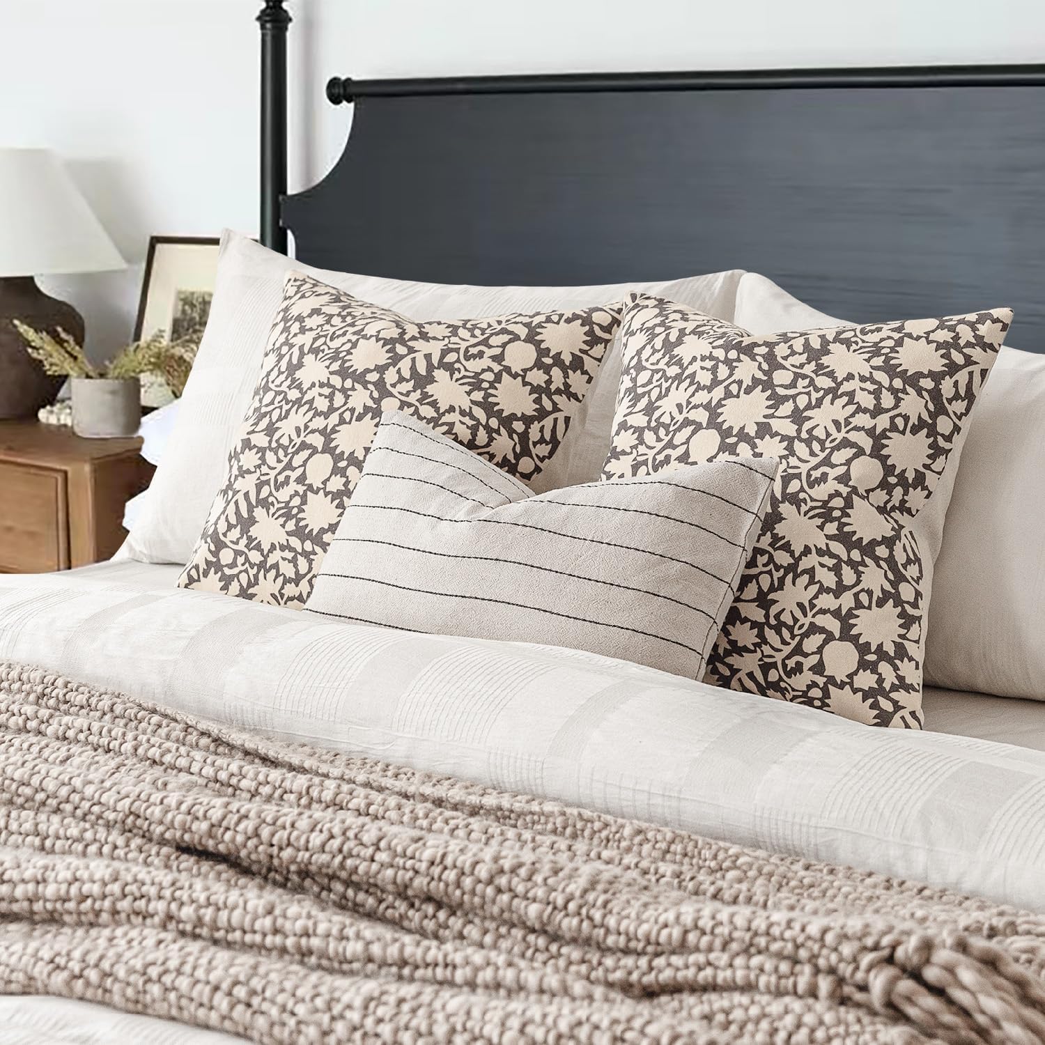 Foindtower Set of 2 Decorative Neutral Floral Throw Pillow Covers Accent Farmhouse Cushion Covers Boho Vintage Pillowcase for Couch Sofa Bedroom Living Room Home Decor Outdoor,18×18 Inch,Rustic Gray