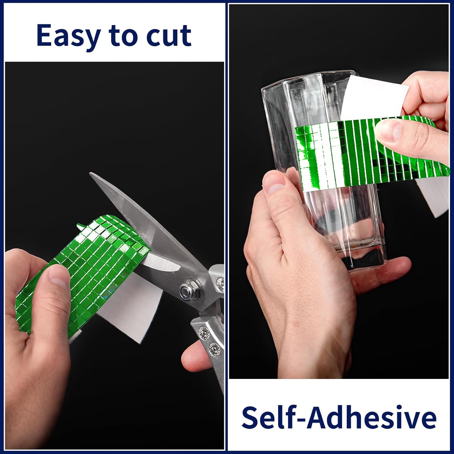 Art3dwallpanels 6 Pack Self Adhesive Glass Mirror Mosaic Disco Tiles Small Square Mirror Sticker for for DIY Disco Ball, Disco Cowboy Hat, Vase, Bottle, Interior Decoration, 2364 Pieces, Green