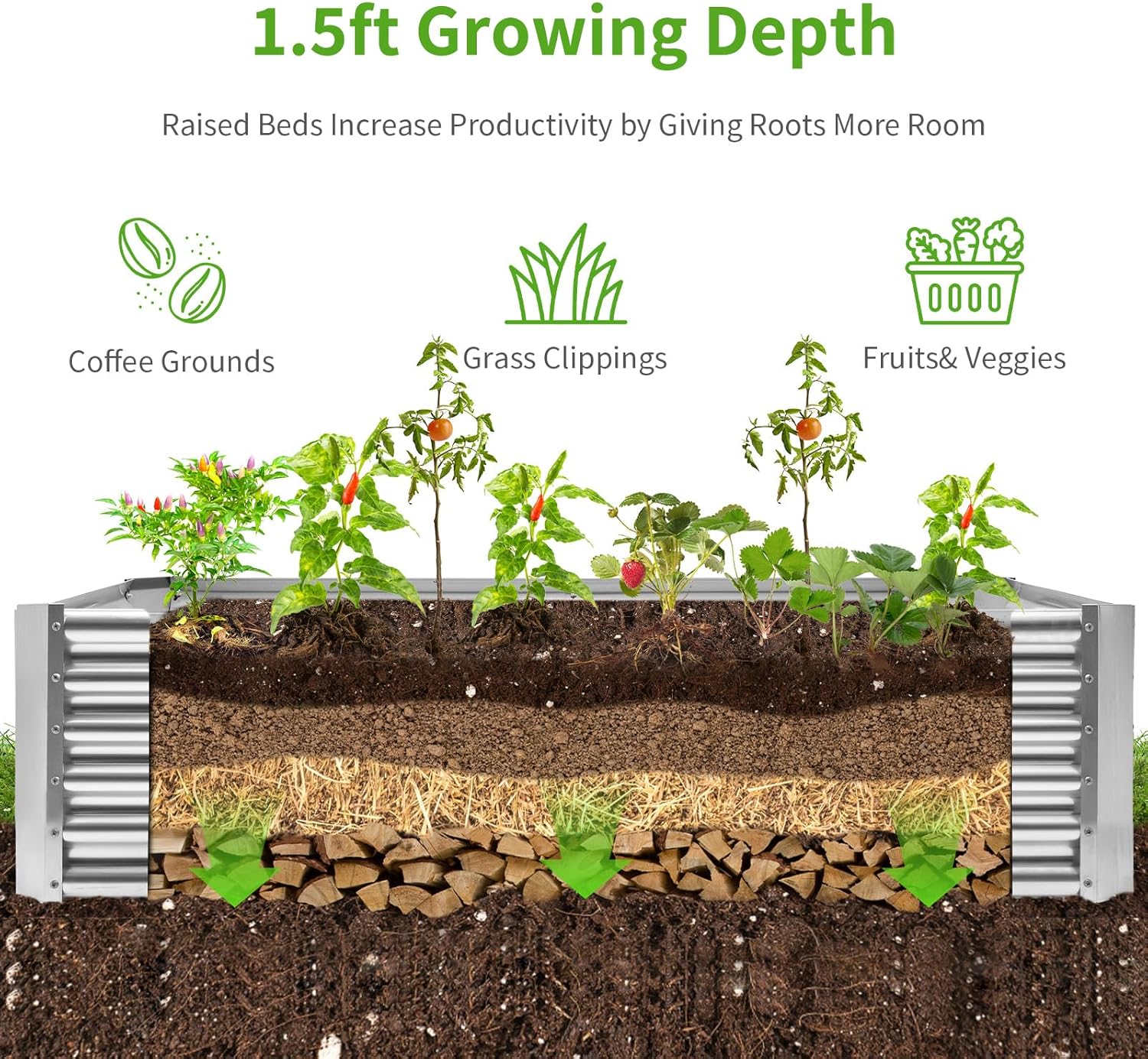 Land Guard Metal Raised Garden Bed for Gardening, 8x4x1.5ft Galvanized Raised Garden Bed, Planter Boxes Outdoor for Vegetables, Fruits and Flowers (Silver)