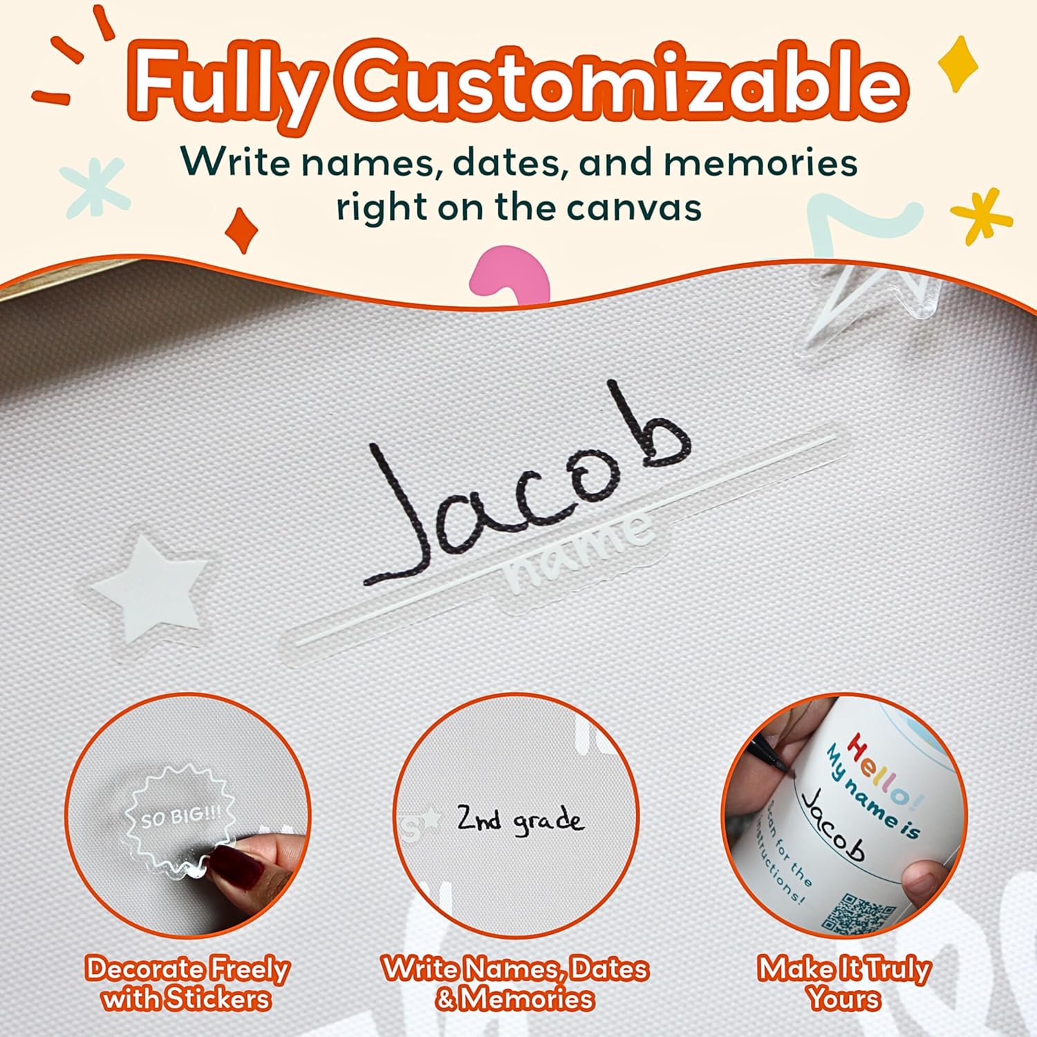 - Customizable Growth Chart for Wall: Make your child’s room unique with a personalized kids height chart. This growth chart for kids includes fun stickers, perfect for toddler room decor and a must-have for any baby room.