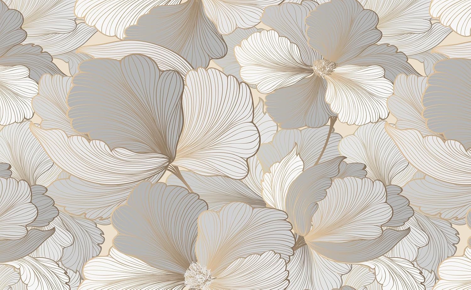 Grey and White Ginkgo Leaf Wall Mural Wallpaper for Bedroom Living Room (Not Peel n' Stick)