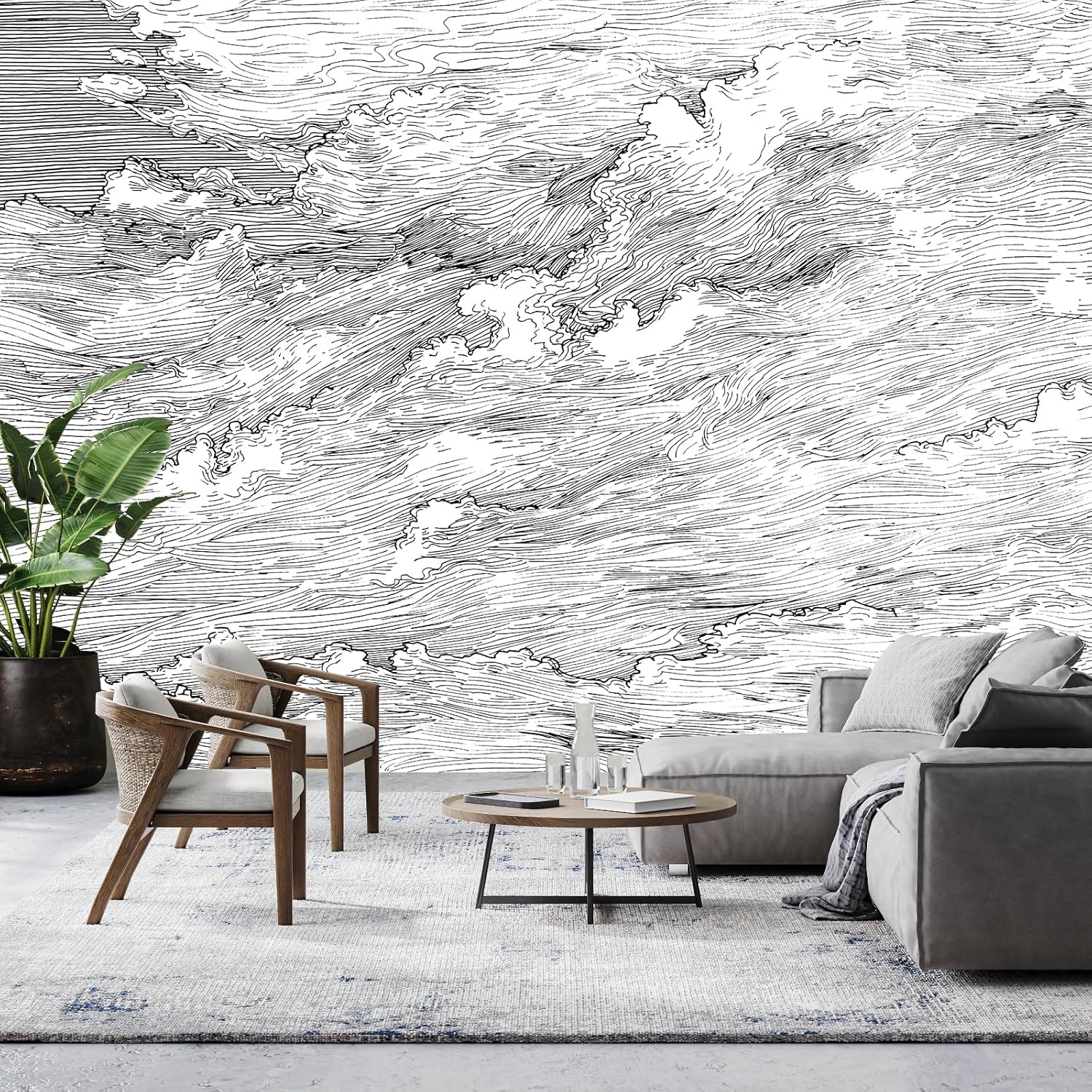 Black and White Cloud Wallpaper Wall Mural for Bedroom Living Room(Not Peel n' Stick)