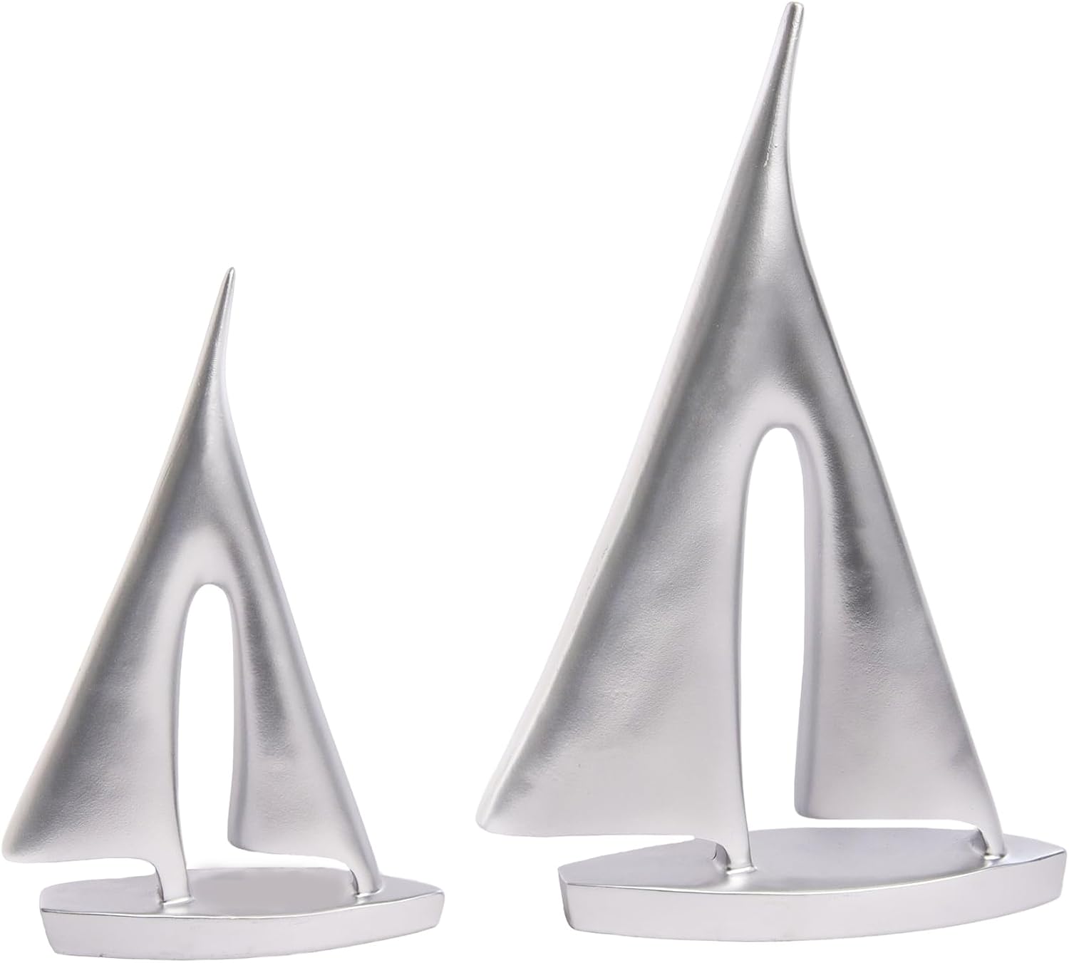 Modern Sculptures Home Decor, Silver Sailboat Decor Ornament, Boat Decorations Statue Decor, Art Sculptures and Statues, Sailboat Gifts Home Office Bathroom Shelf Decor Nautical Decor (2 Pack)
