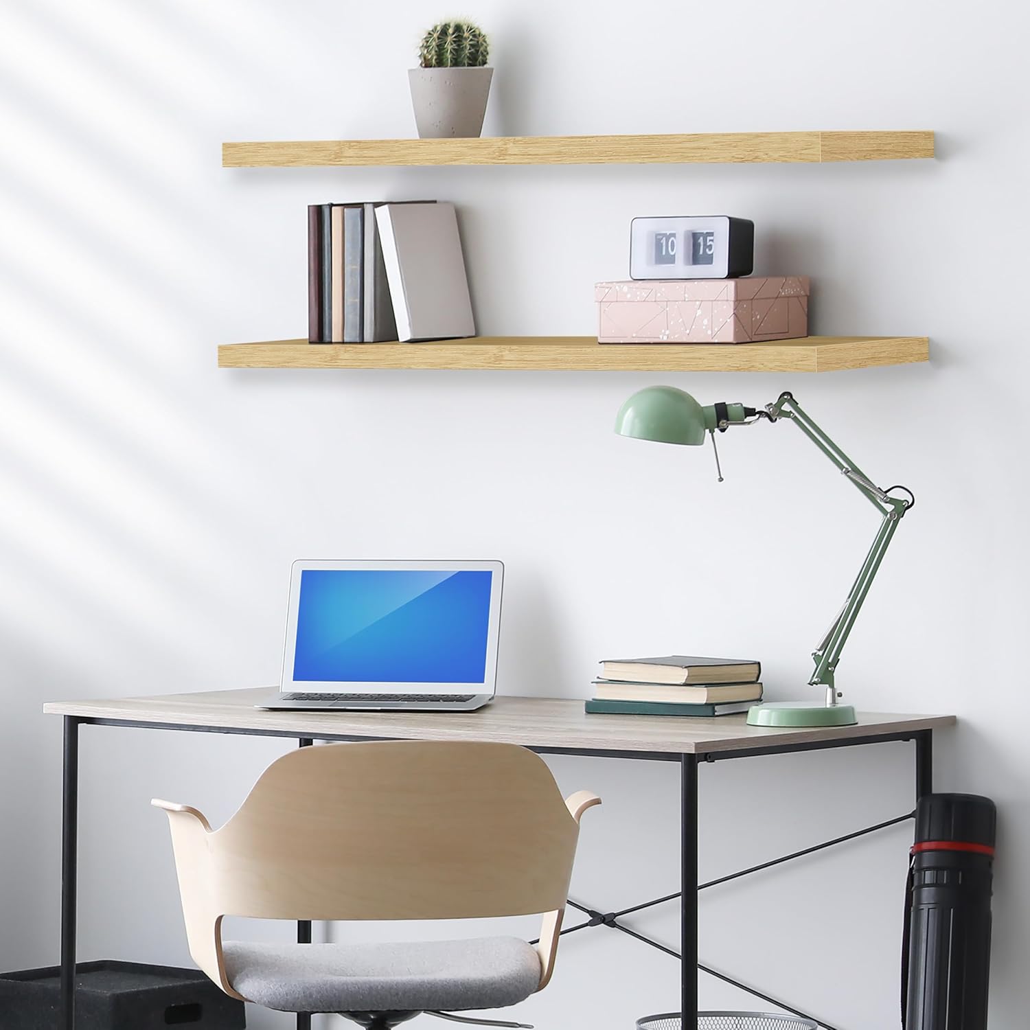 Sorbus Floating Shelves for Wall - 35 Inch Long Bathroom Shelves, Wall Decor for Bedroom, Kitchen, Living Room & Book Storage - Mounted Floating Shelf with Invisible Brackets (Maple Wood, 2 Pack)